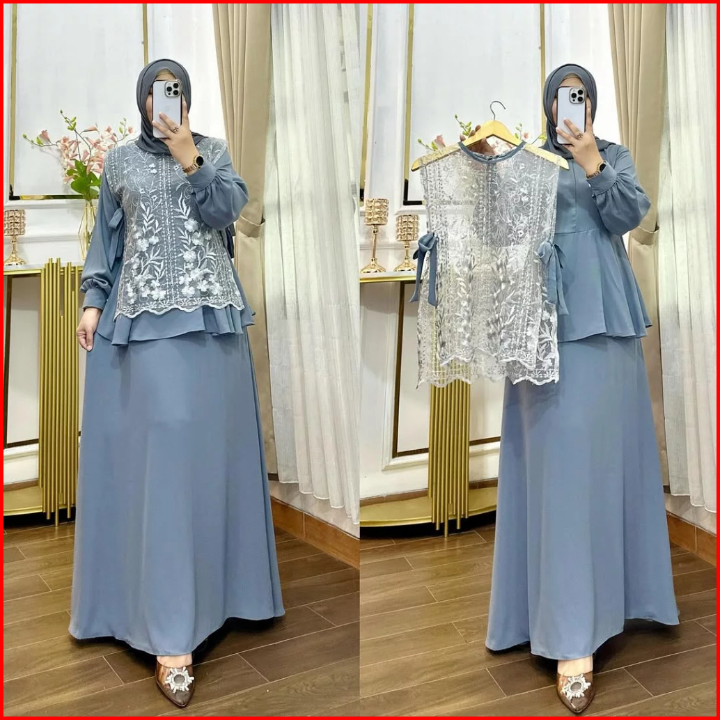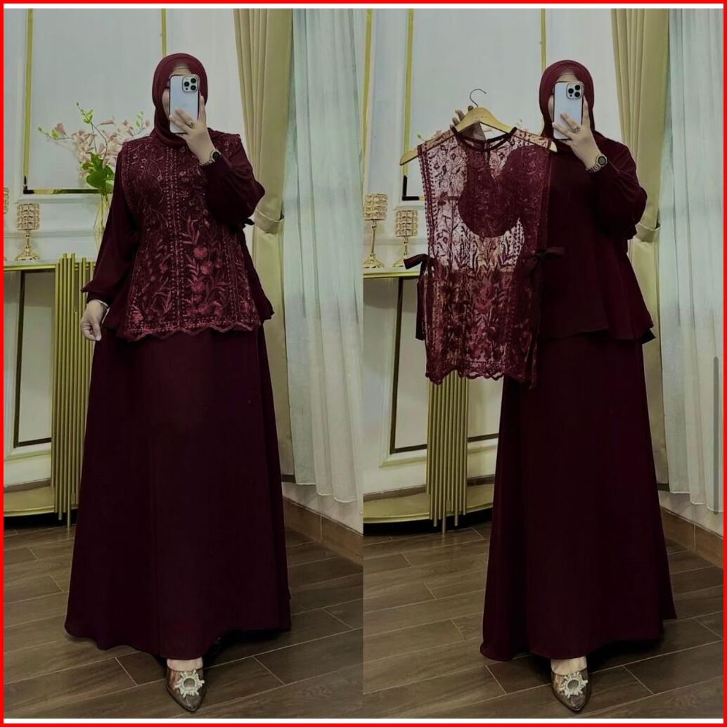 Baju Gamis Pesta Brukat Wanita Kombi Ceruty Olivia Dress Kondangan Brokat Tille Premium Mewah Elegan