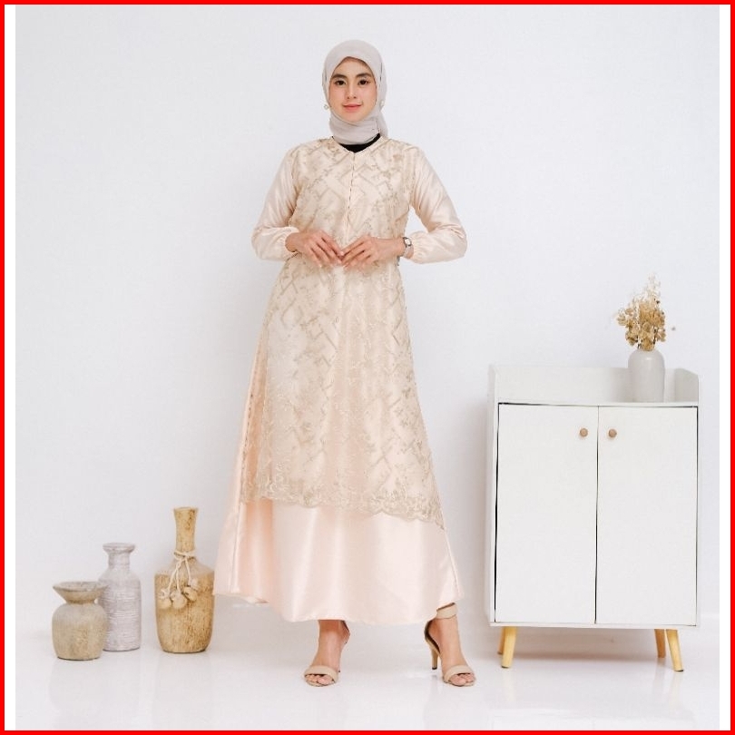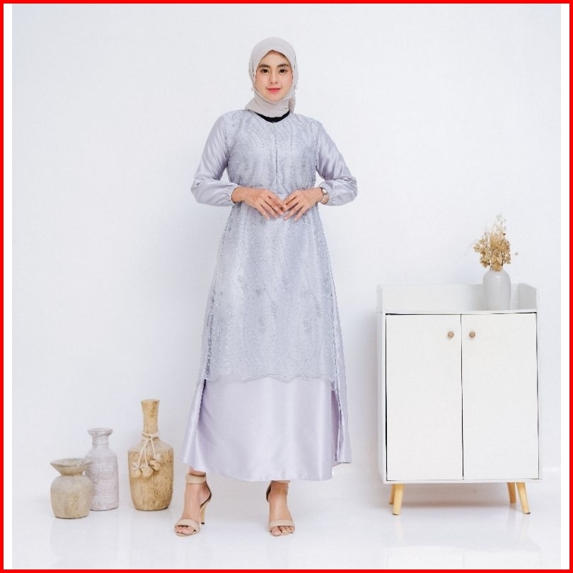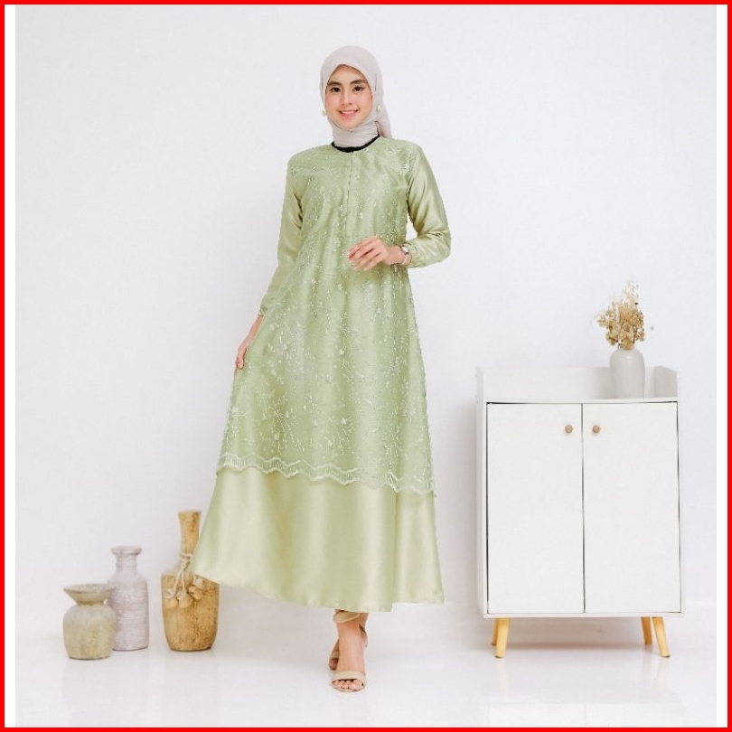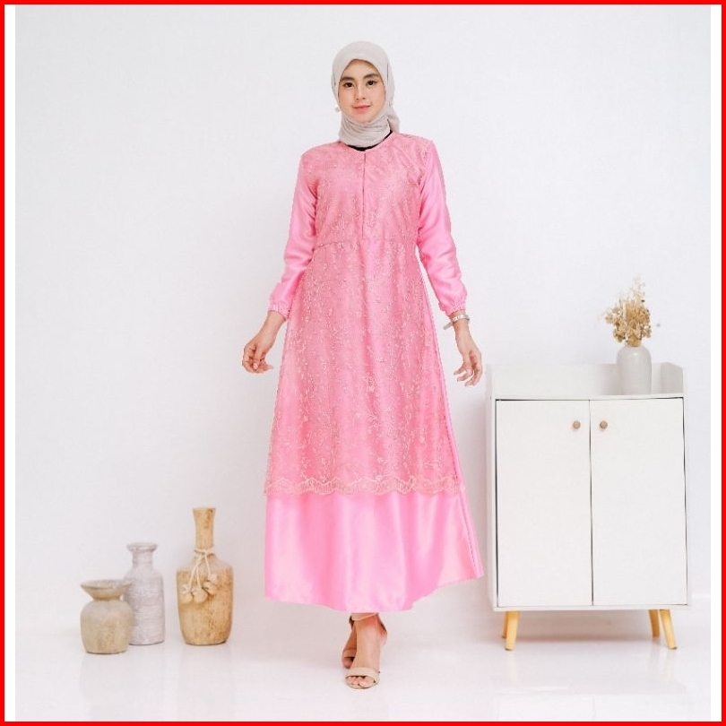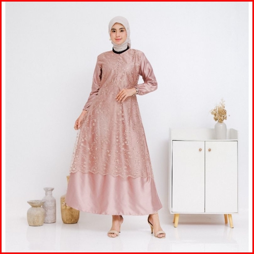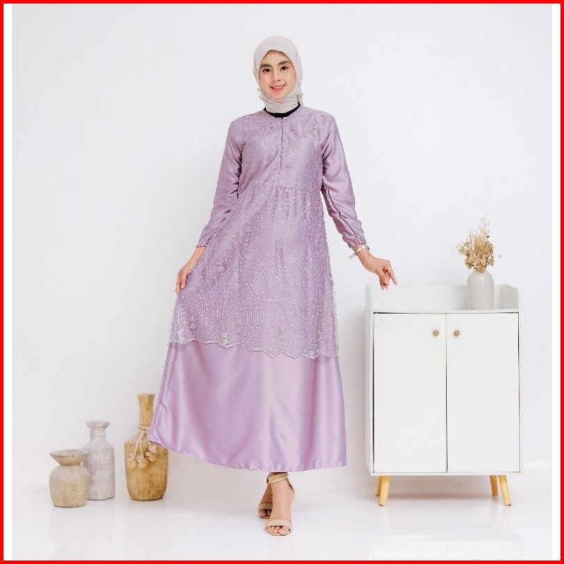 Gamis Brukat Tille Mutiara Tangan Karet Bahan Satin Size M-l-xl-xxl.