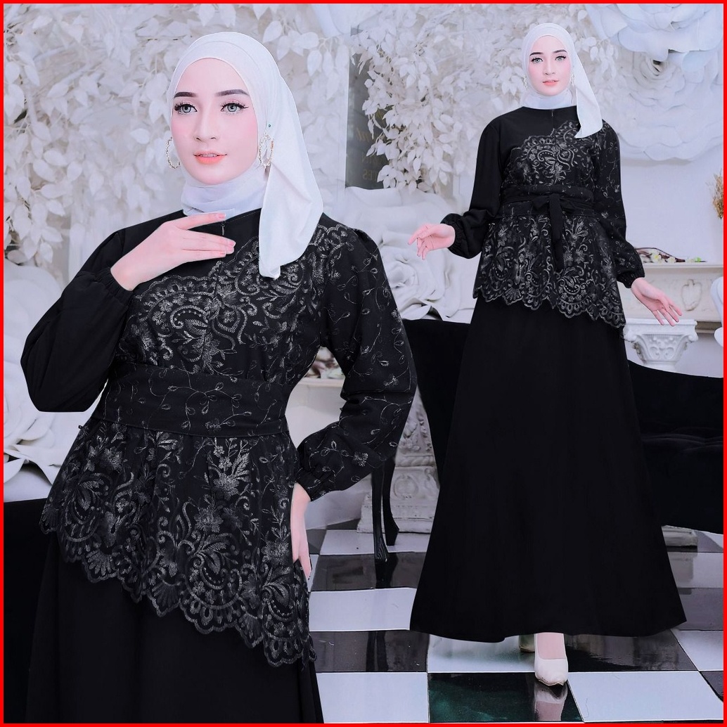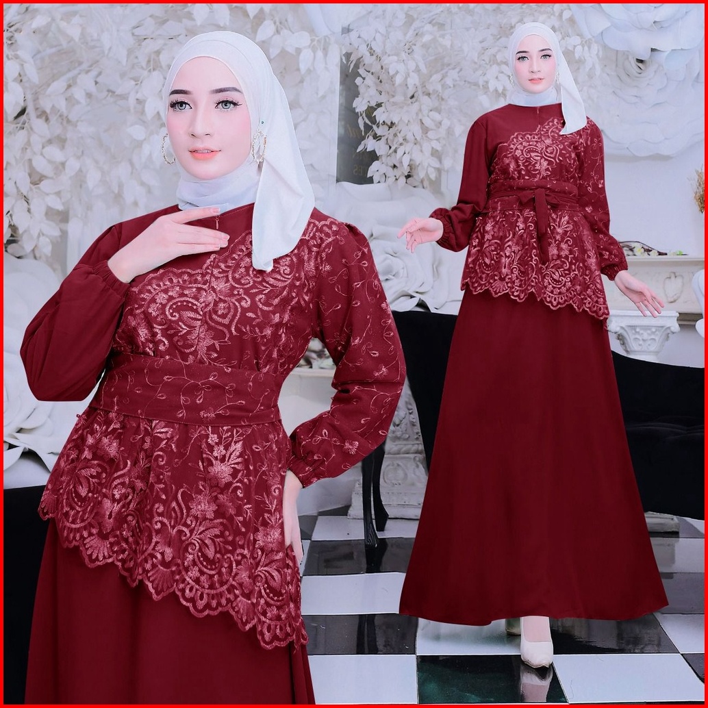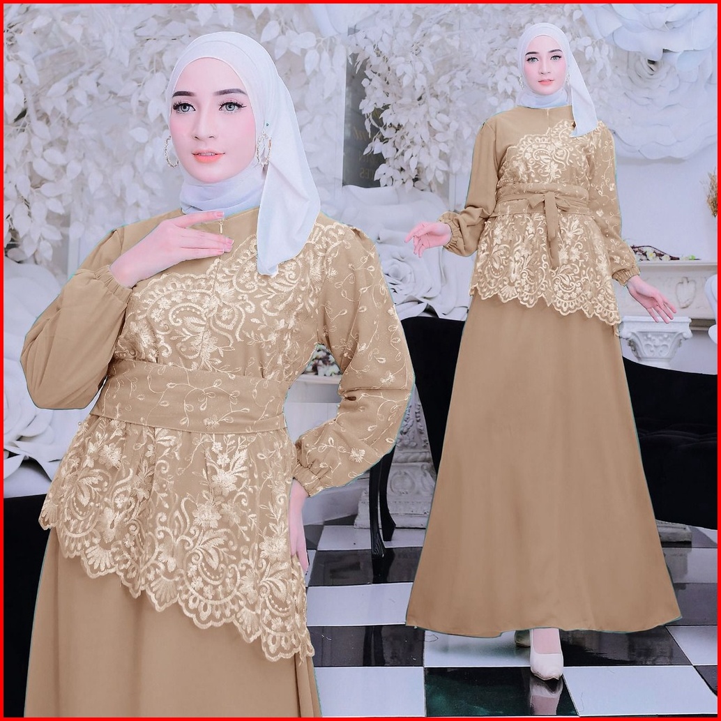 New Product Maxi Dress Shiren Gamis Brukat Kombinasi Bahan Ceruty Size S-m L Xl Xxl Busui Friendly Cocok Untuk Kondangan