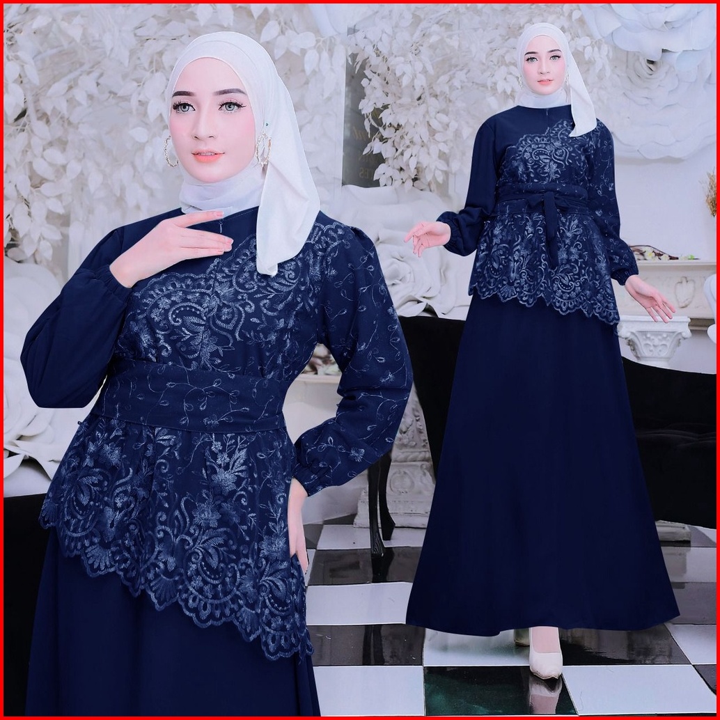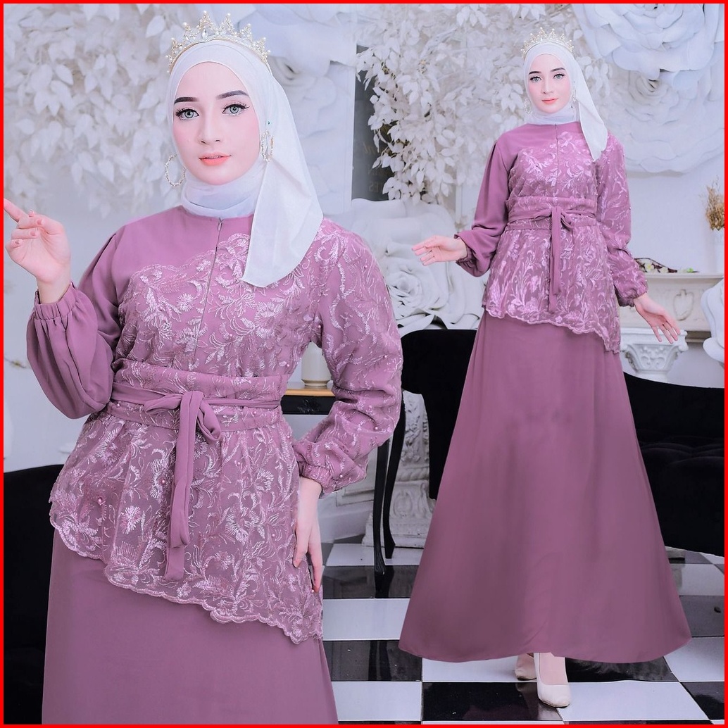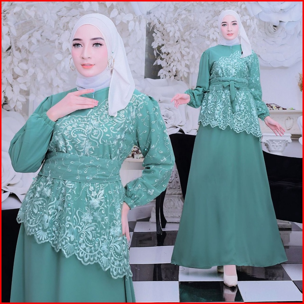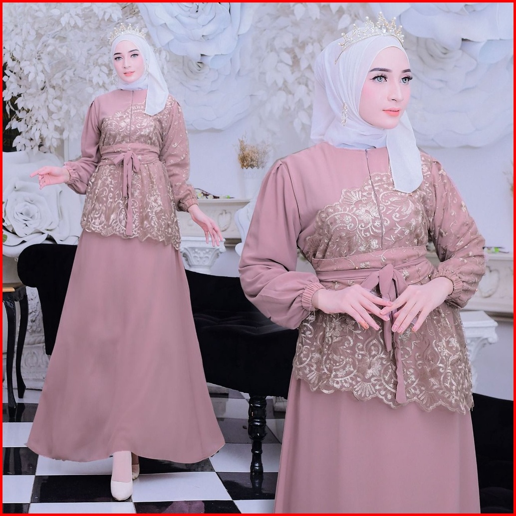 New Product Maxi Dress Shiren Gamis Brukat Kombinasi Bahan Ceruty Size S-m L Xl Xxl Busui Friendly Cocok Untuk Kondangan