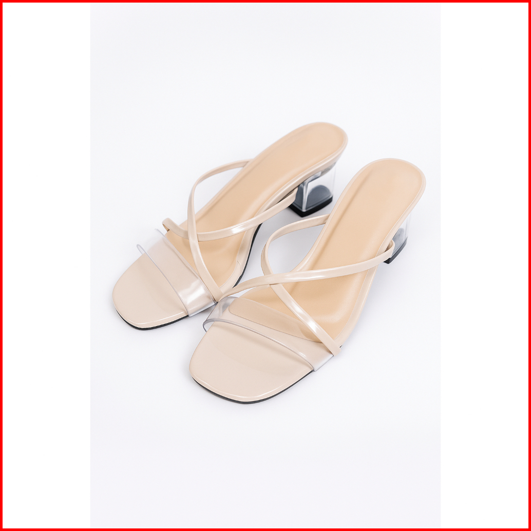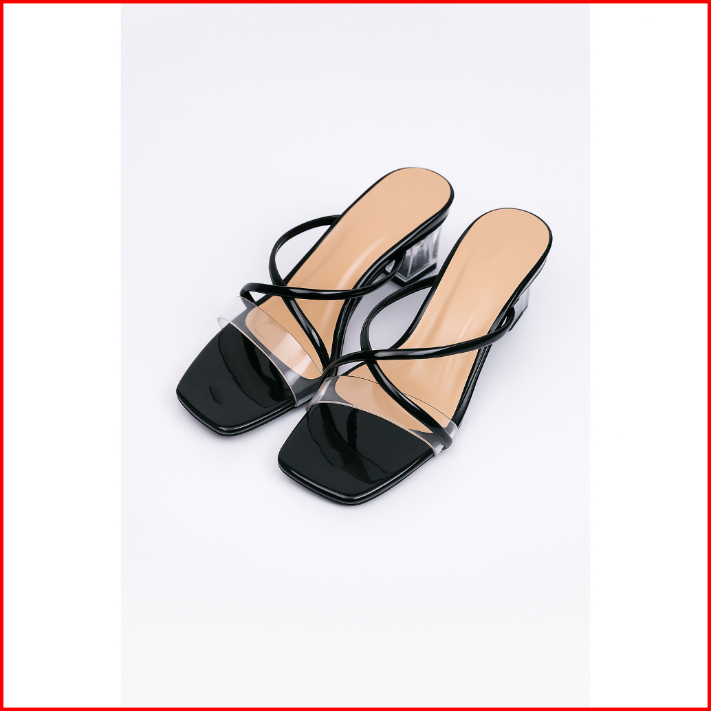 Mullus Adeline Sandal Heels Kaca Wanita Pesta Tali Silang Simple Elegan Tinggi 5 Cm