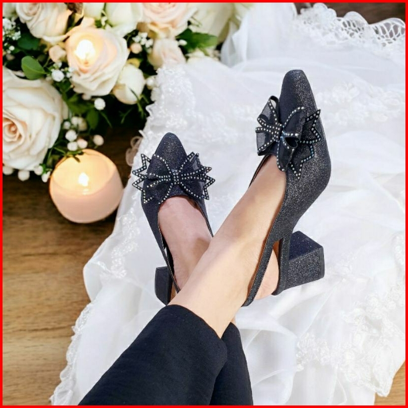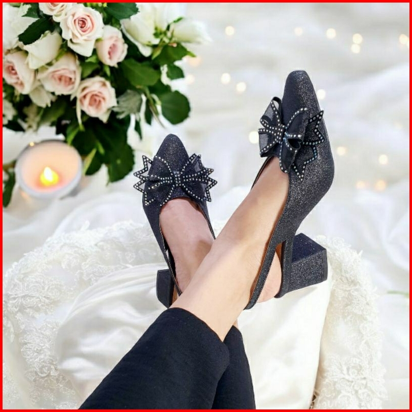 Sandal Heels 5cm Slingback Glitter Infinity Jn 367 Elegan Wedding Shoes Seserahan Graduation Wisuda