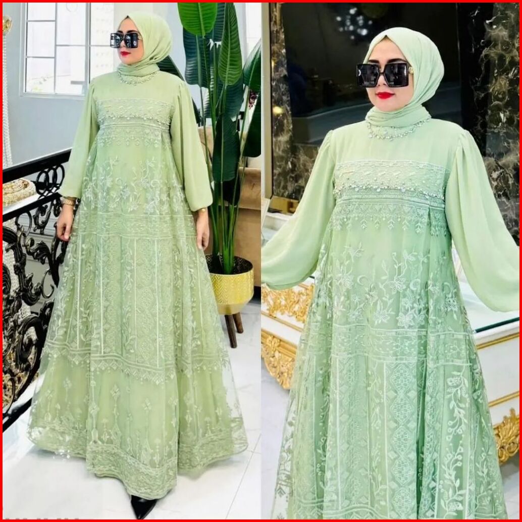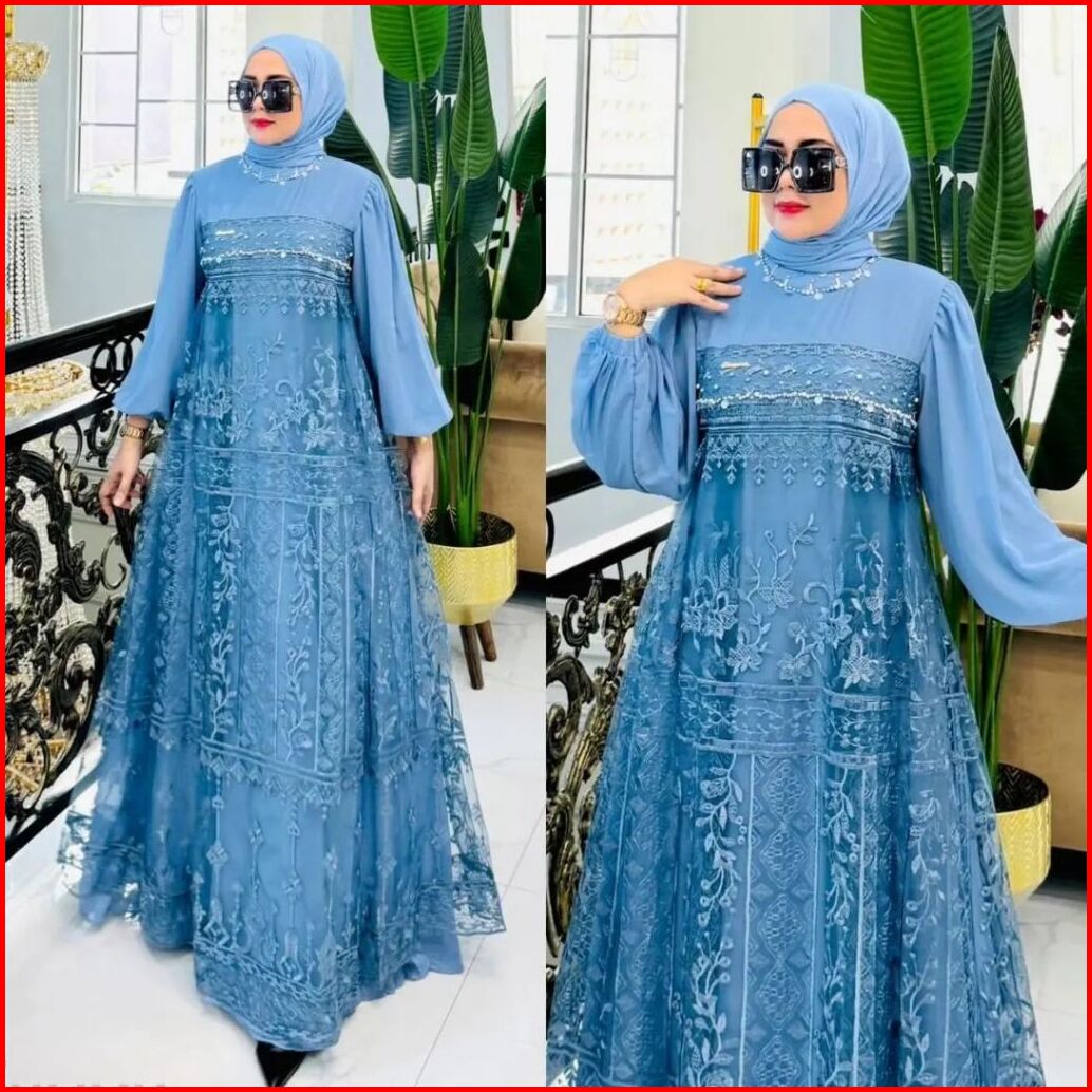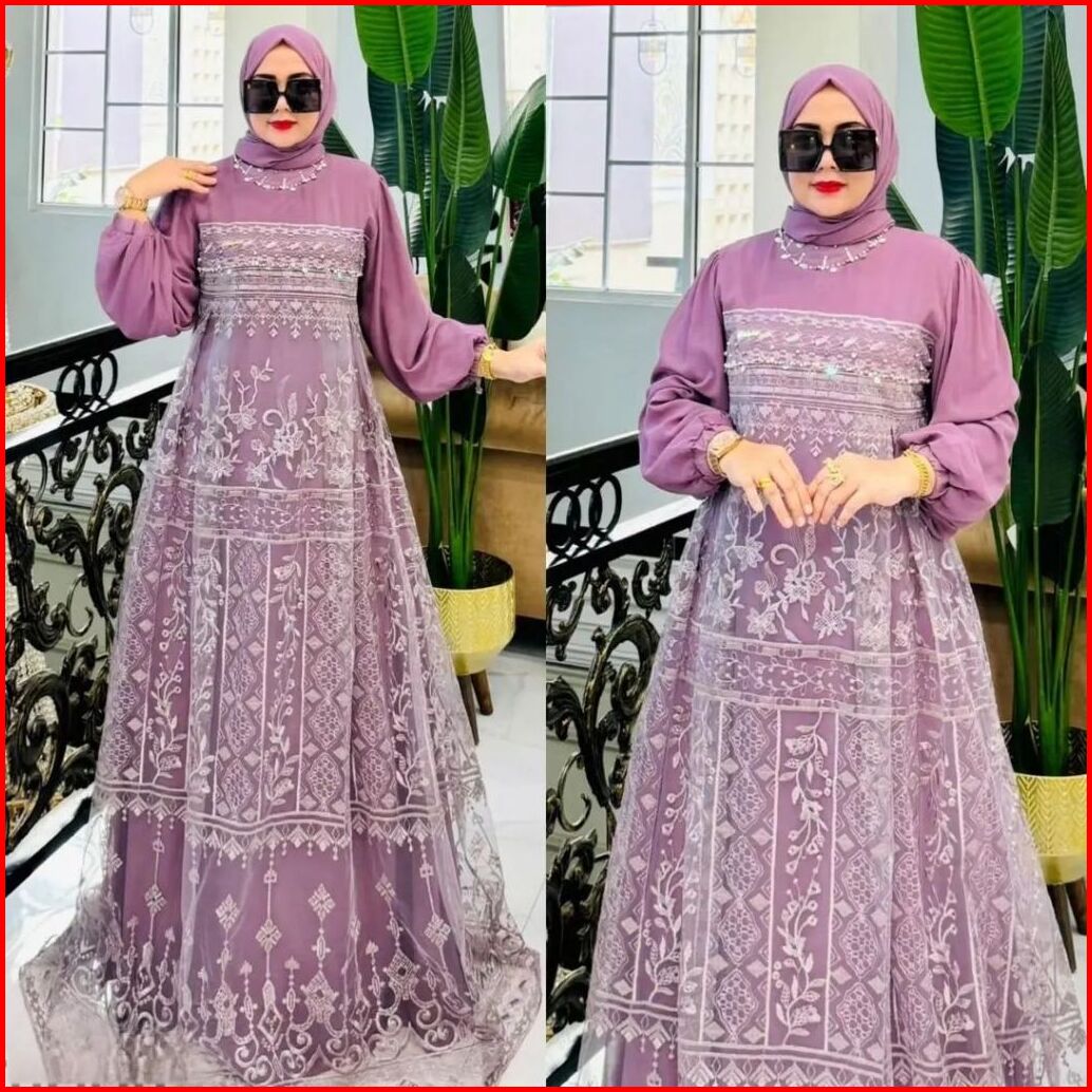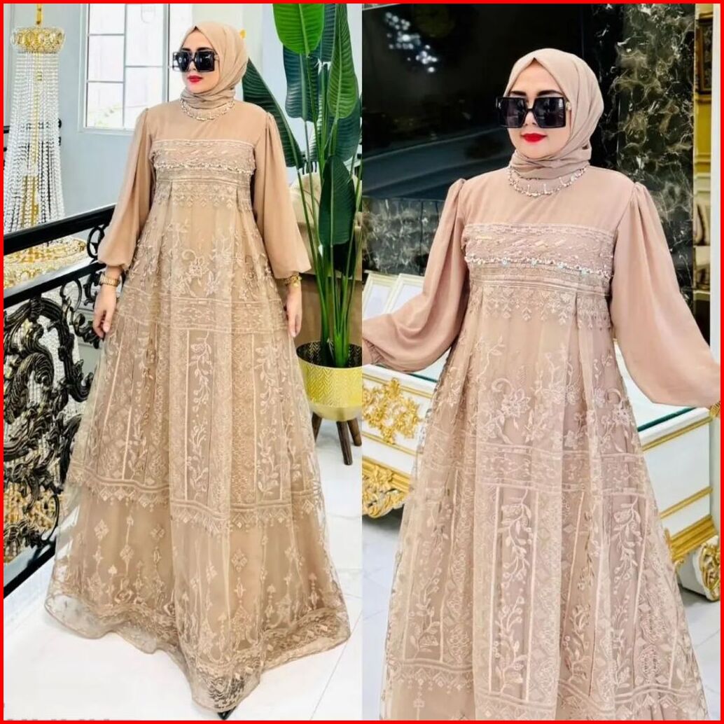 Dress Brokat Premium Wanita Terbaru 2024 Aurora Gamis Pesta Brukat Tille Premium Mix Payet Mutiara