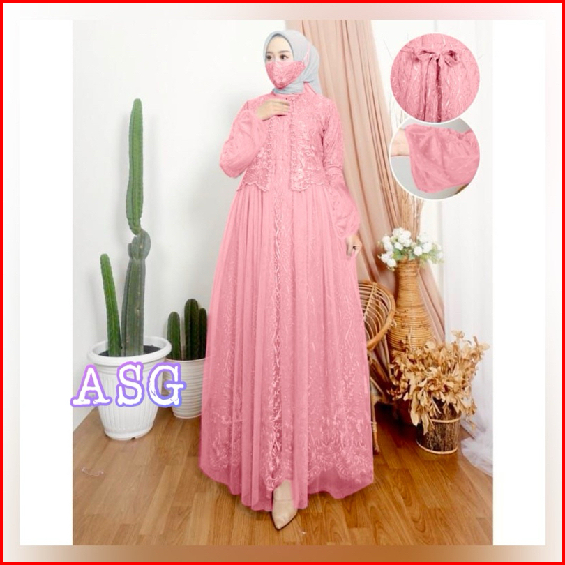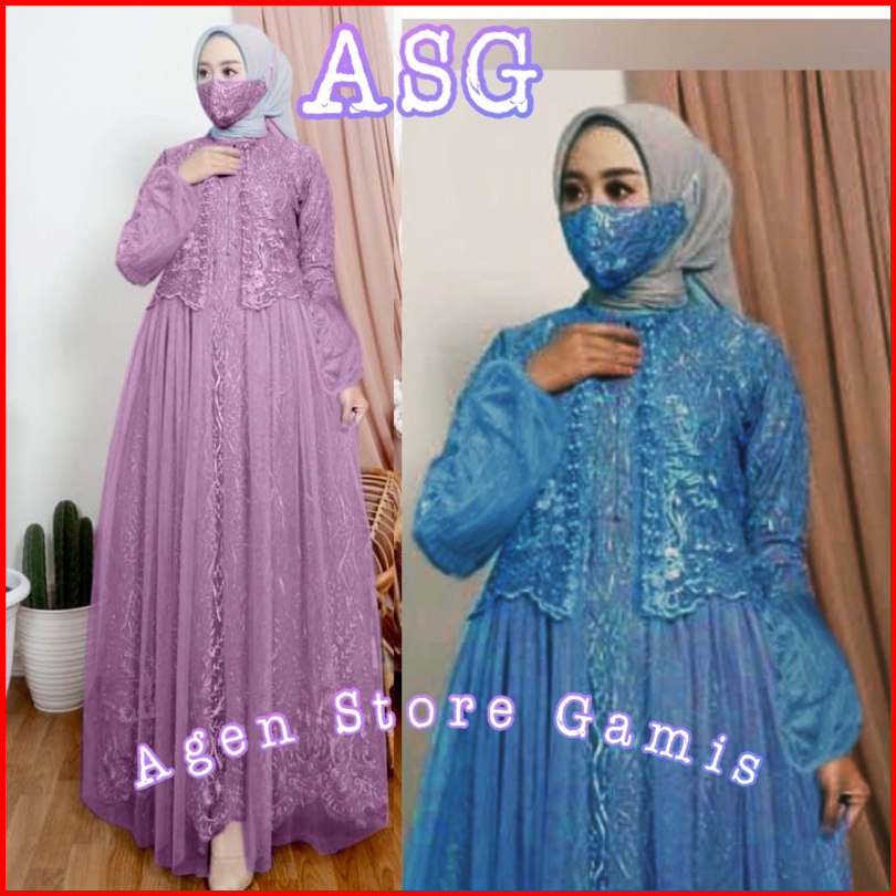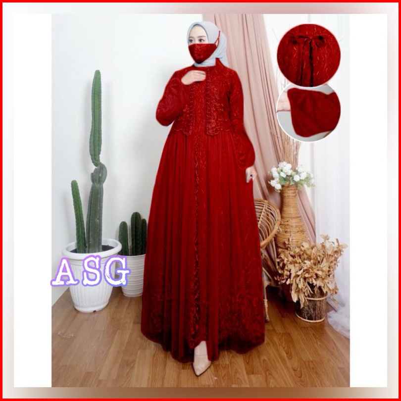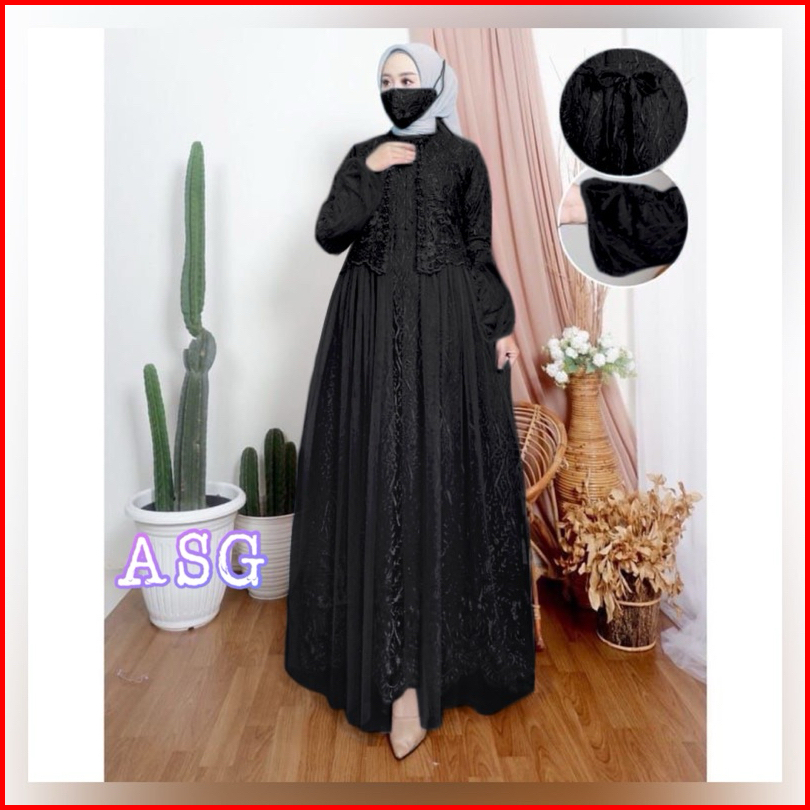 Vella Gamis Terbaru Brukat Premium Full Layer Depan Dress Seragam Pesta Kondangan Remaja Dewasa Wanita Jumbo Termurah