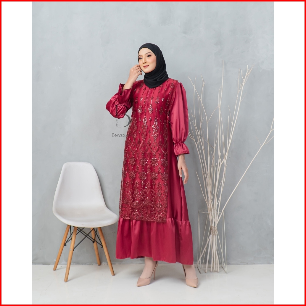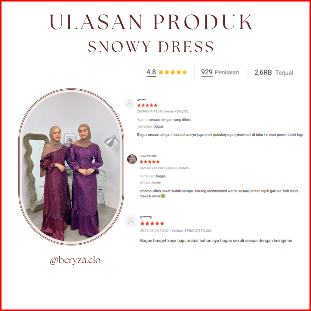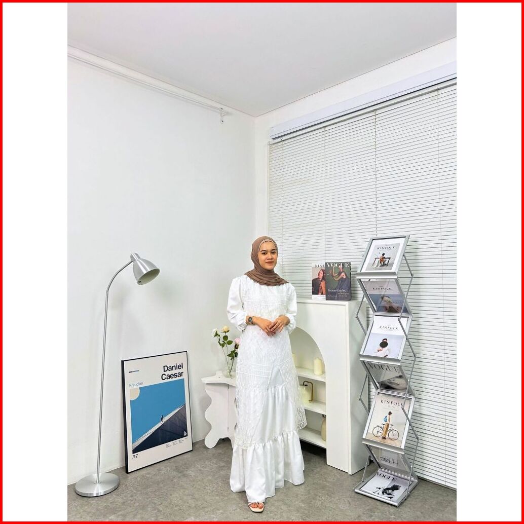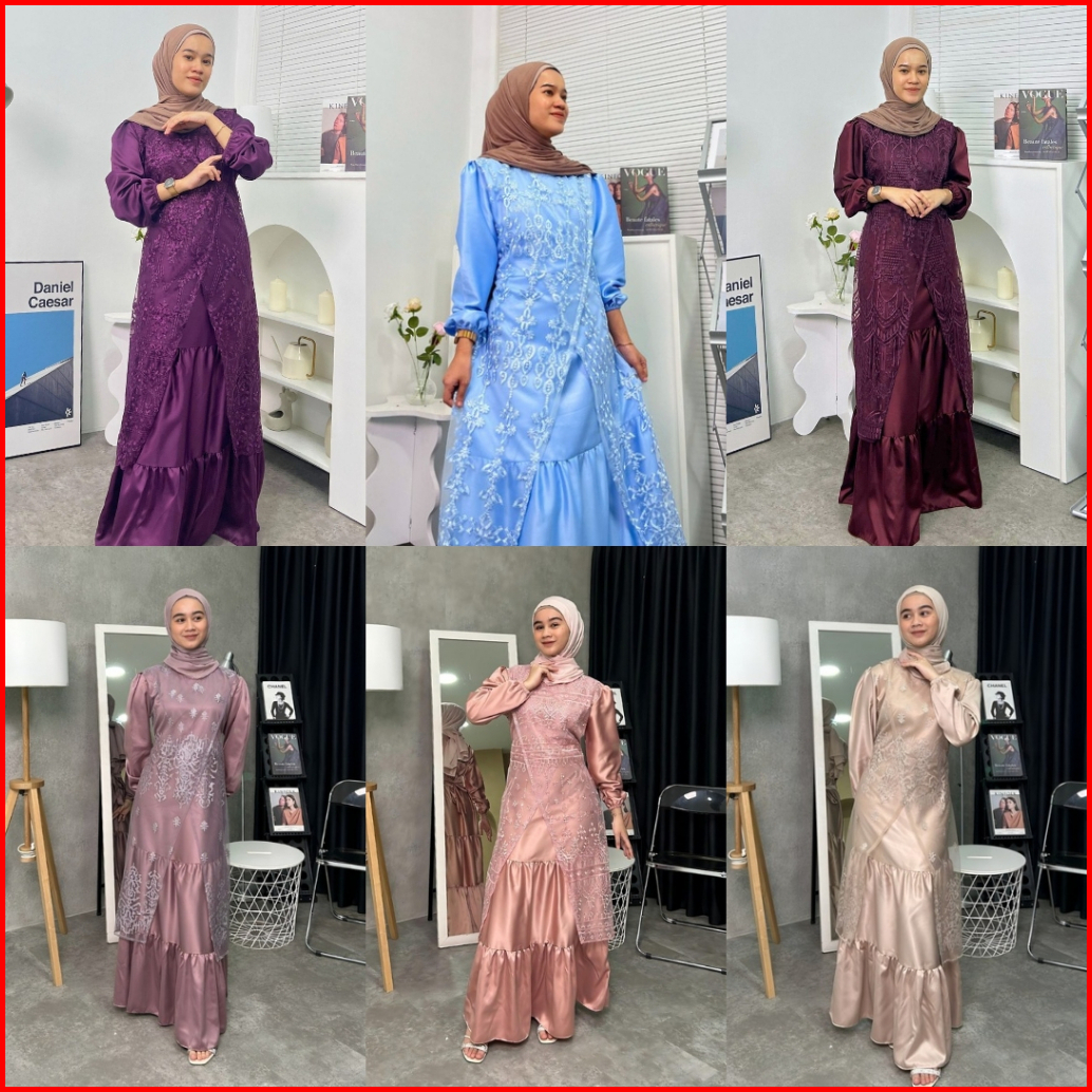 Snowy Dress Silk Mix Tille Brukat Gaun Kondangan Busui Friendly Gamis Remaja Maxi Dress Simple One Set Size M L Xl Xxl W