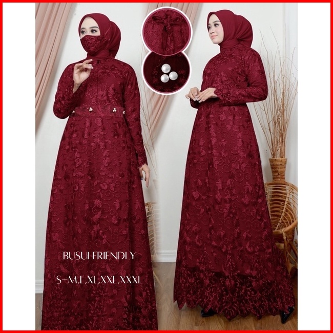 Gamis Haira Termurah Free Masker Brukat Gamis Lebaran Full Brukat Tile Mutiara Size S-m L Xl Xxl Xxxl Gamis Pesta Gamis