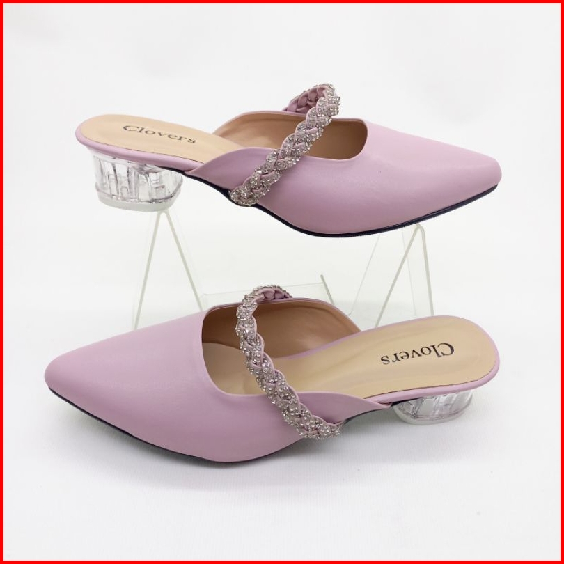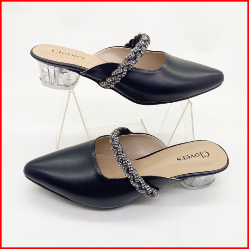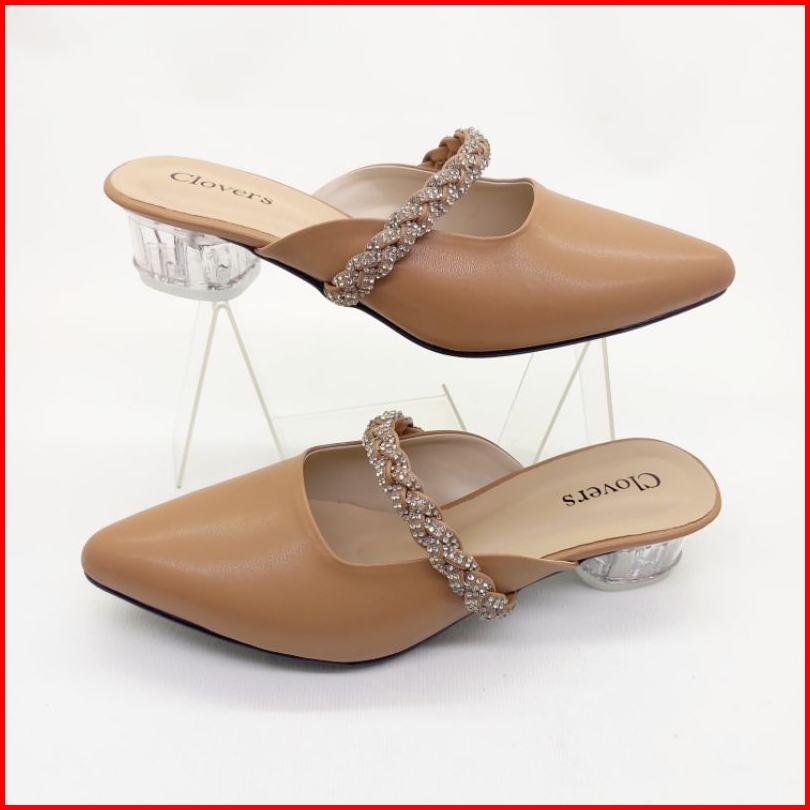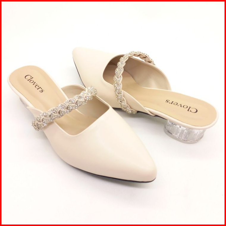 Clovers Shoes Sandal Pesta Pernikahan Wanita Sandal Harian Formal Sandal Wisuda Hak Kaca 3 Cm