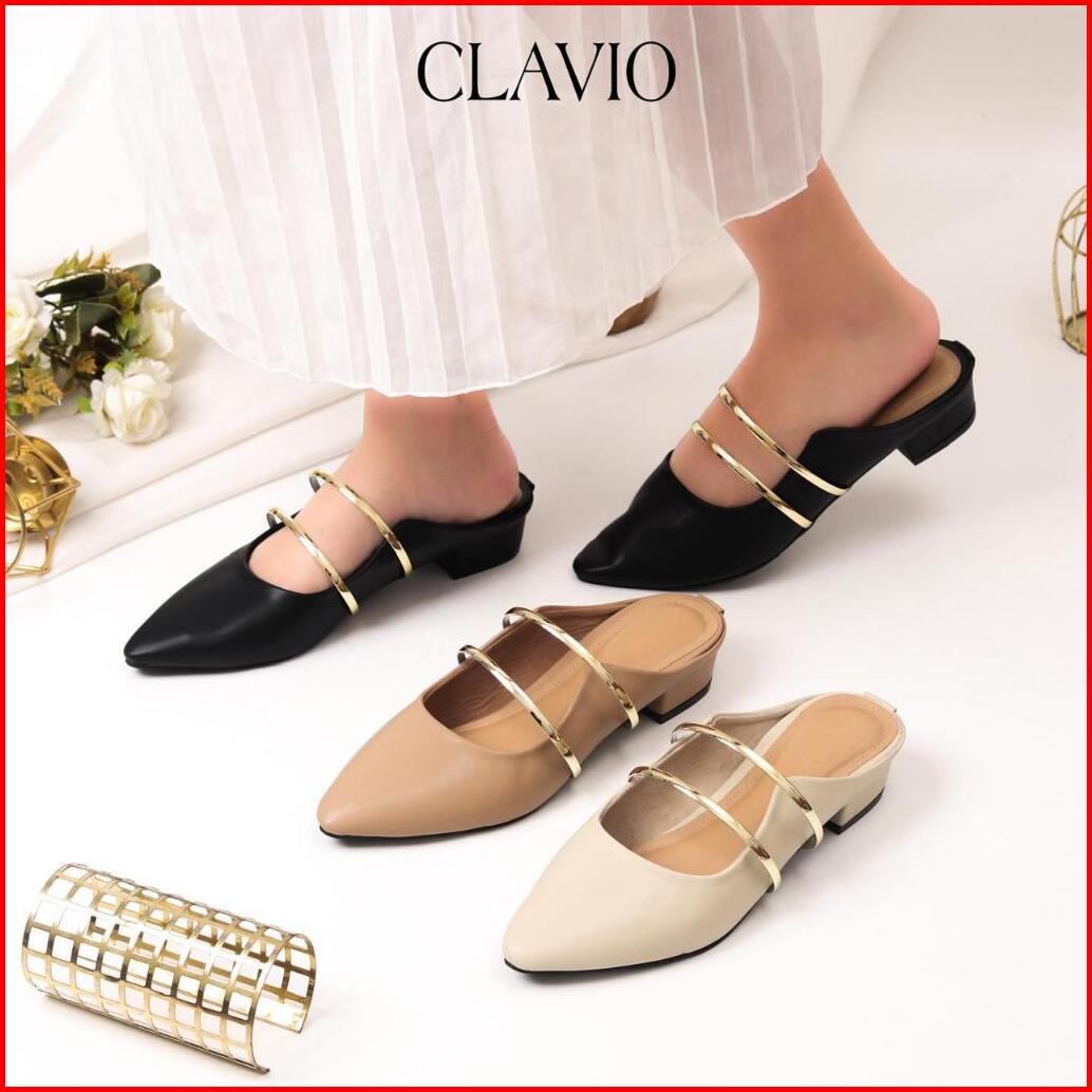 Clavio Wester Sendal Slop Mules Wanita Hak 3 Cm Shoes Sandal Wanita Heels Wanita