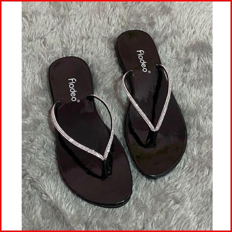 Sandal Wanita Fladeo Japit Bling Kristal 37-40 Sendal Teplek Flat Cewek