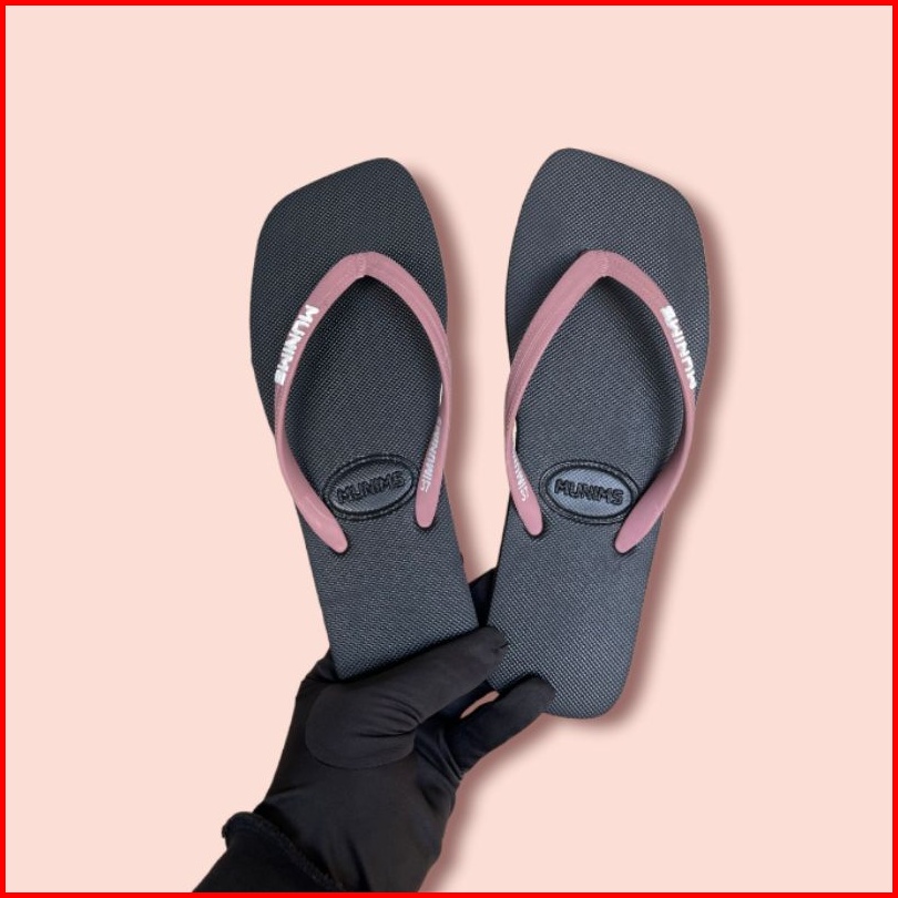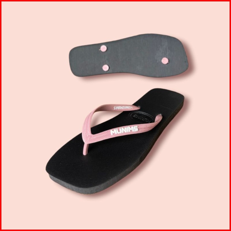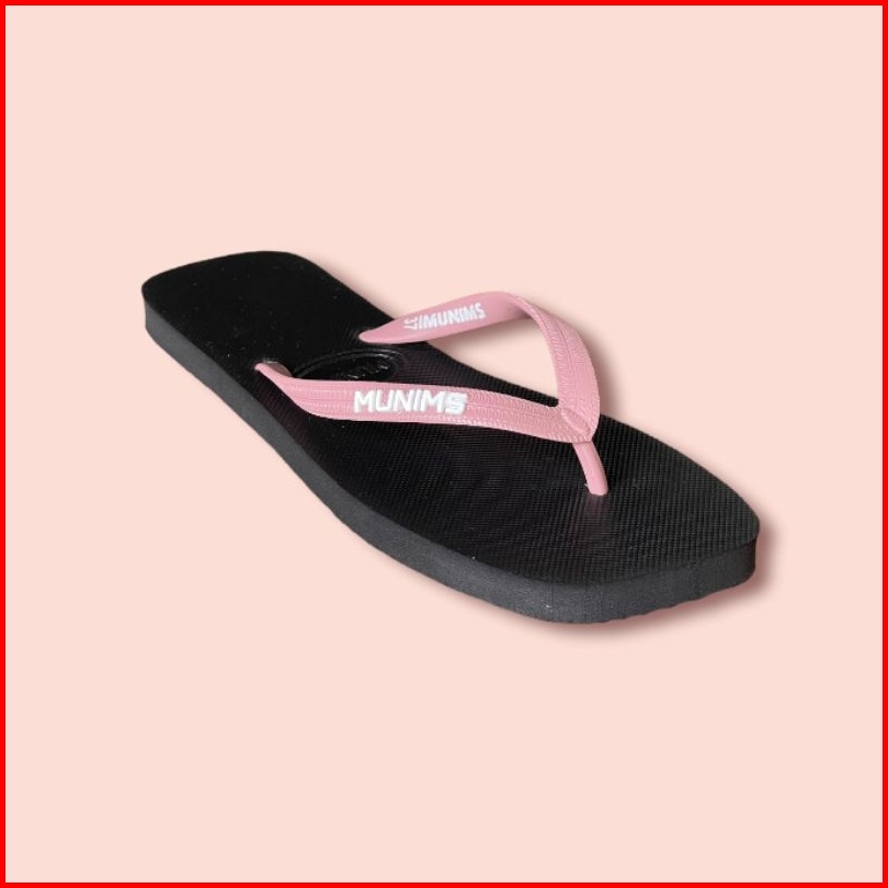 Munims Flip Flop Classic Women Sandal Jepit Wanita Santai Sendal Japit Flat Pantai Black Peach