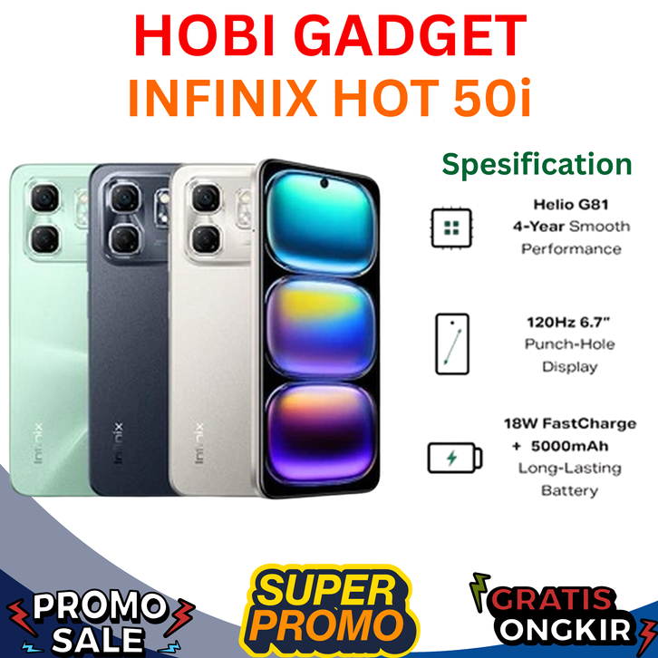 infinix hot 50i 6/128GB garansi resmi indonesia - Up to 12GB Extended RAM - Helio G81 - 6.7 inch 120Hz