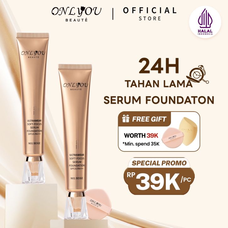 NEW UPGRADE ONLYOU Serum Foundation 24H JAM TAHAN LAMA UltraWear Soft-Focus SPF25 PA+++ Concealer mengecilkan pori-pori