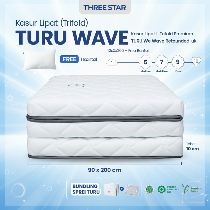 Kasur Lipat Lantai Trifold Premium TURU Wave Rebounded uk. 10x90x200 + Free Bantal