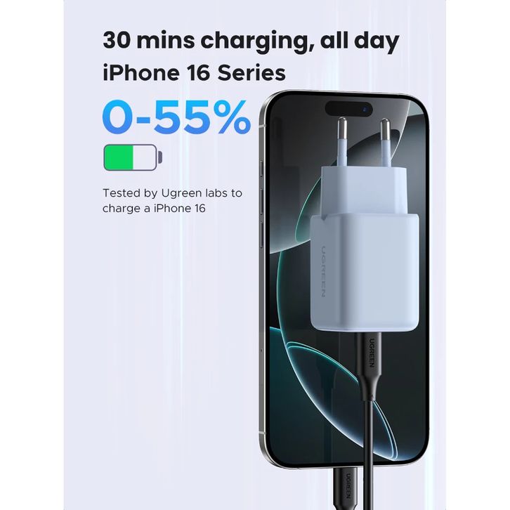 Kepala Charger UGREEN Dual Port USB A USB Type C Fast Charging 20W 30W 45W