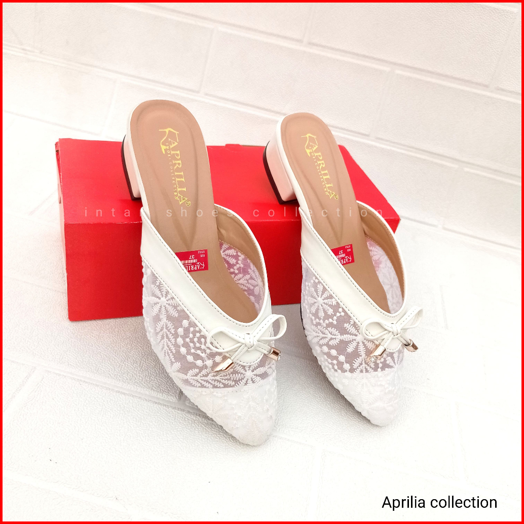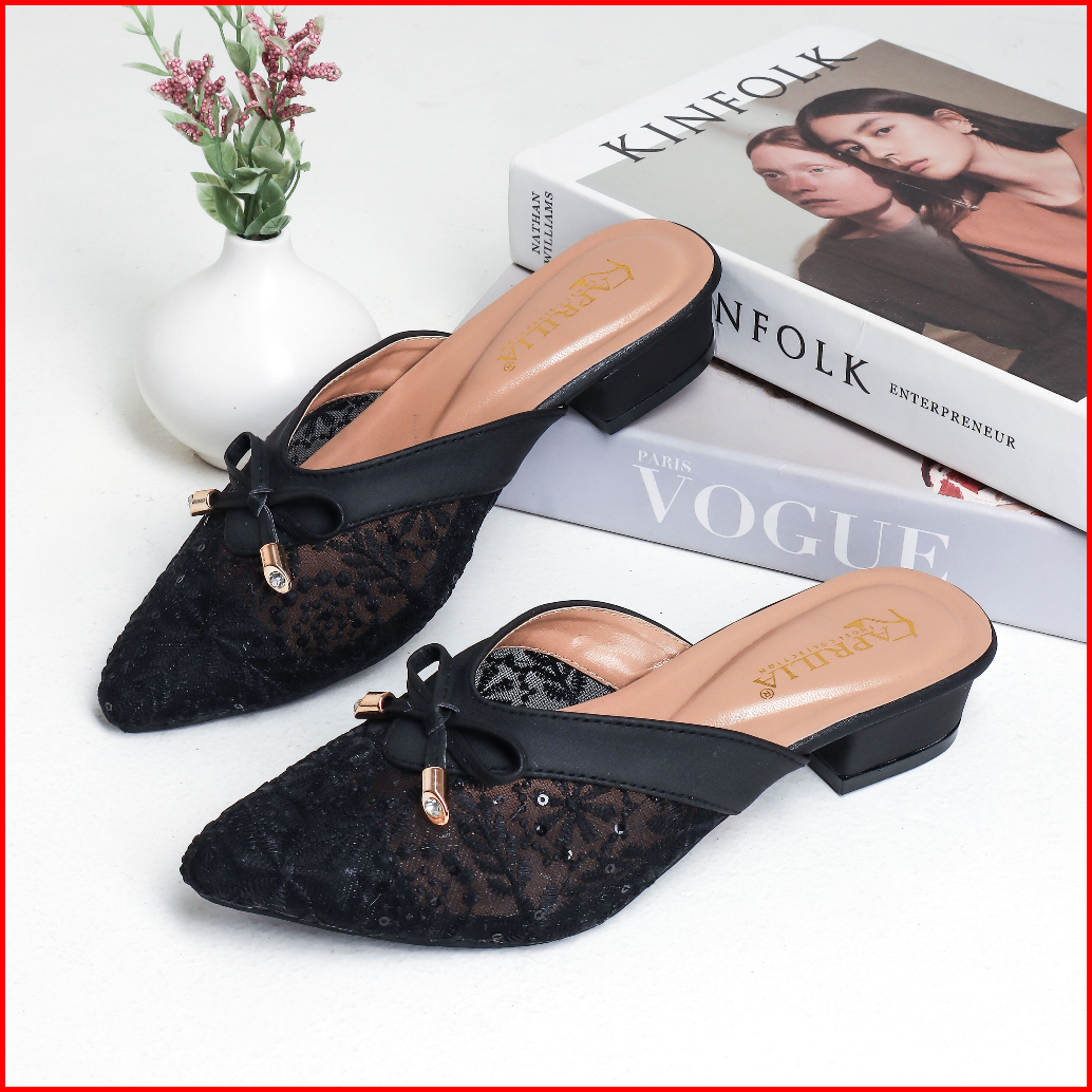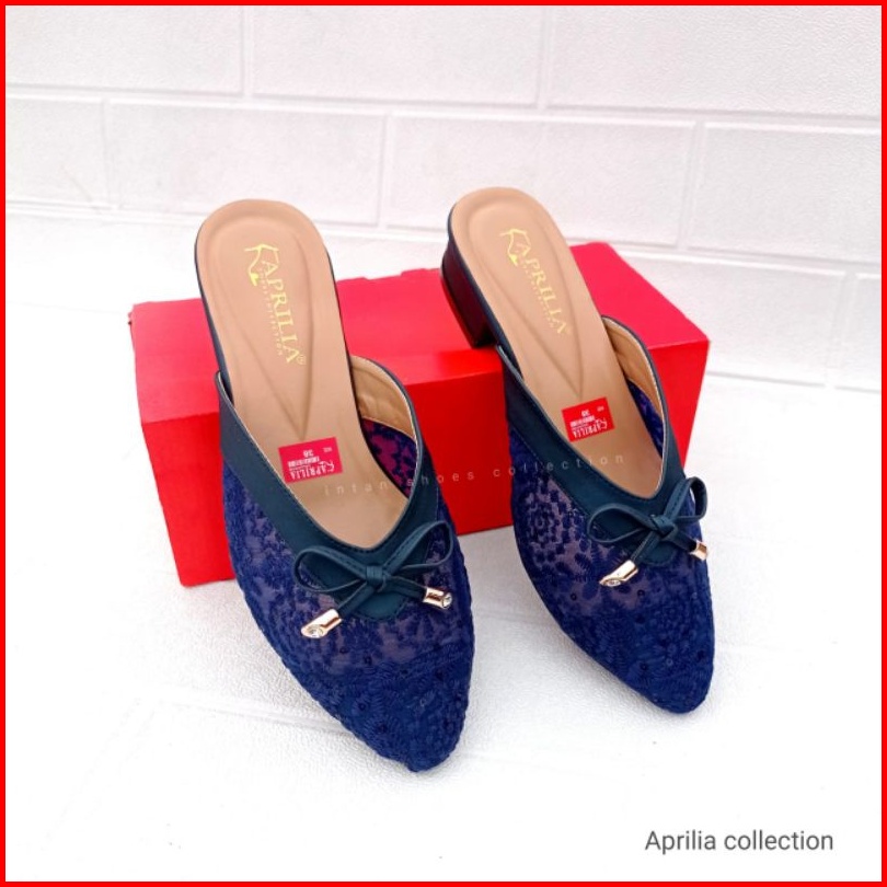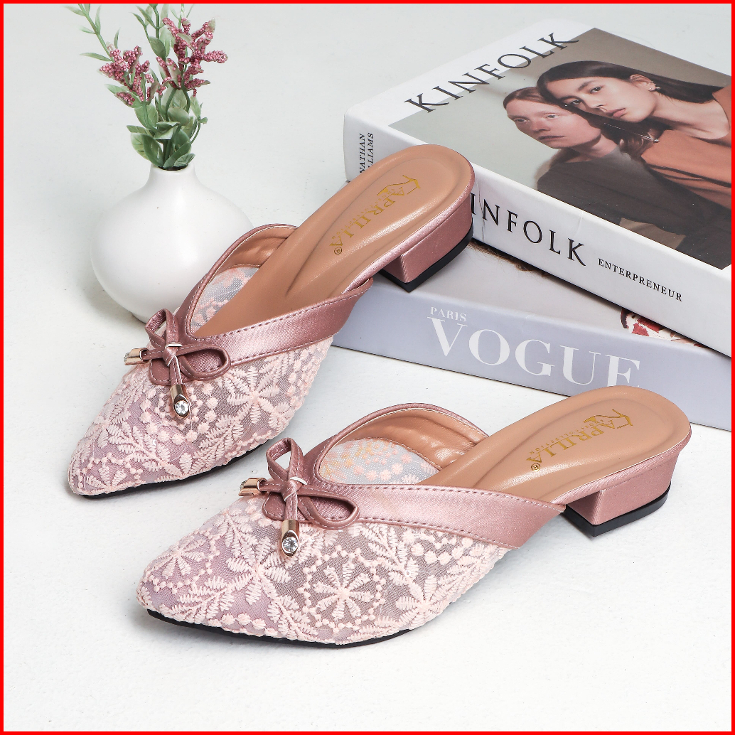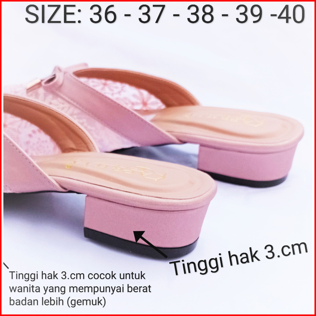 Aprilia Sepatu Sandal Brukat Pesta Wanita Hak Tahu 3cm-sandal Bustong Brukat Kondangan-sendal Slop Wanita Slip On Anti L