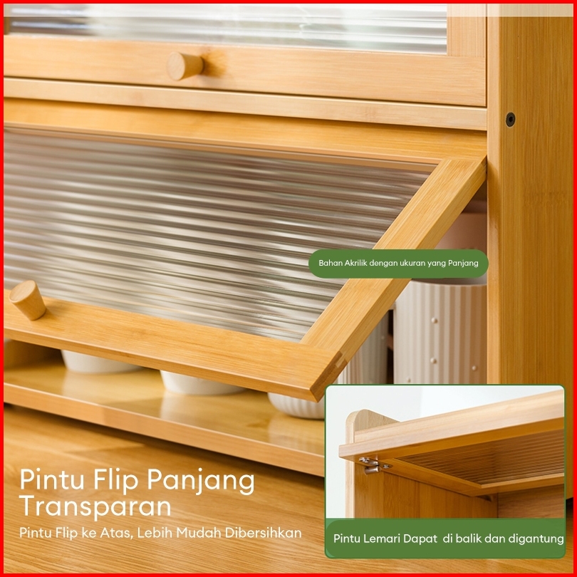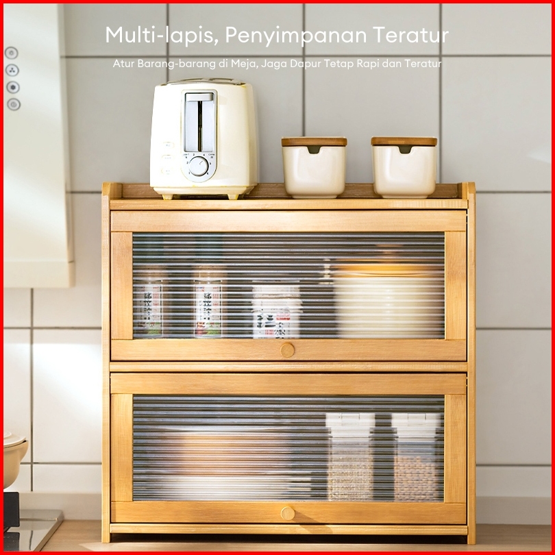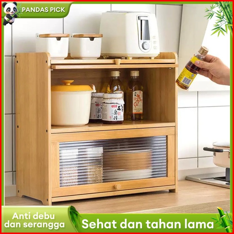 Lemari Kabinet Rak Dapur Penyimpanan Bambu Bumbu Mangkuk Sumpit Piring Kotak Multifungsi