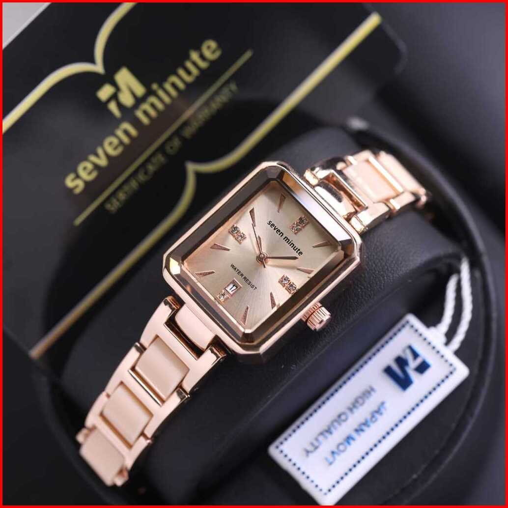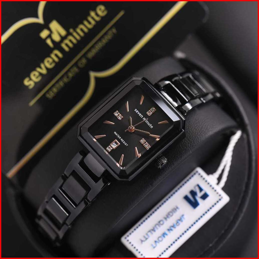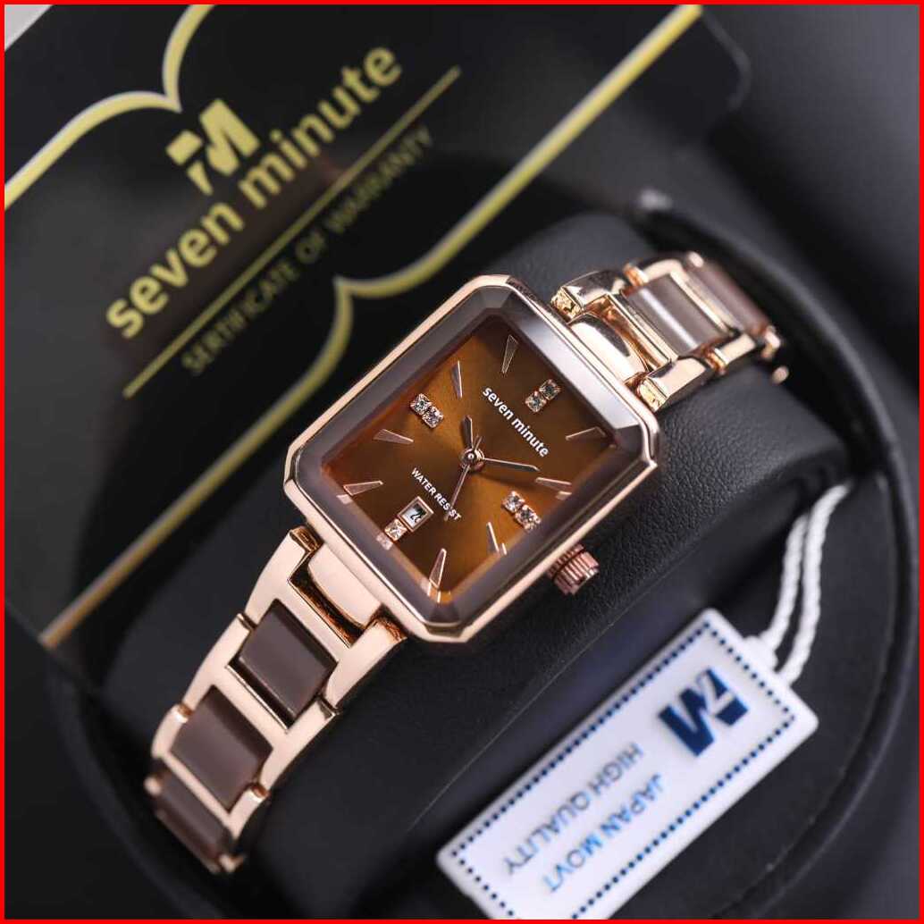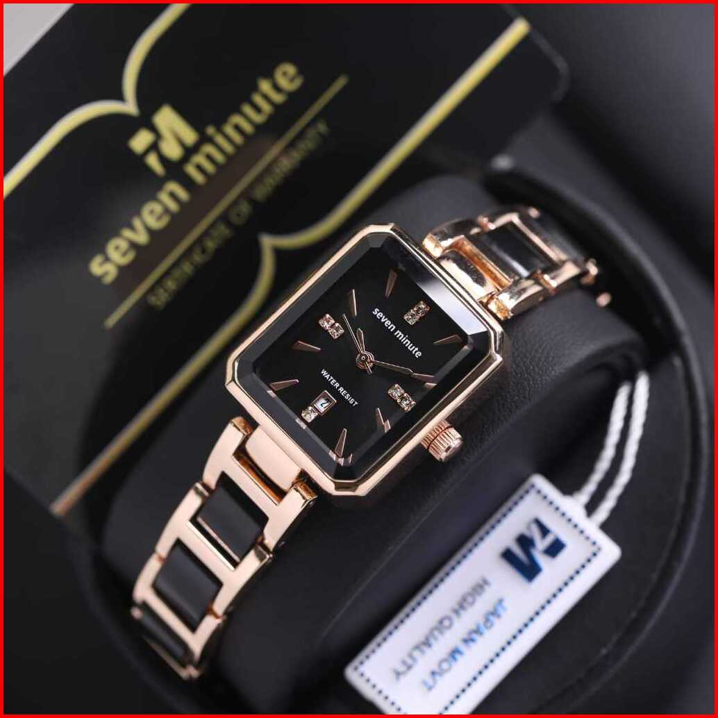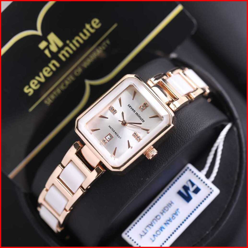 Jam Tangan Wanita Seven Minute- M760 Rantai Combi Keramik Body Segi Tanggal Aktif Box Exclusive