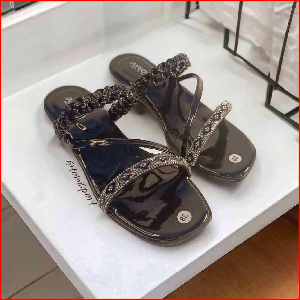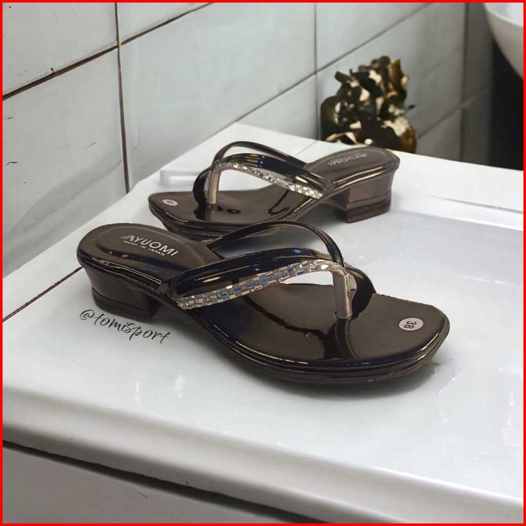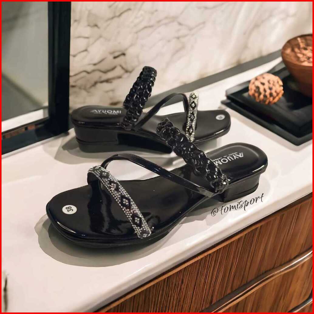 Yuomi Sandal Hak Tahu Wanita Tinggi 3cm Heels Glossy Terbaru Kepang Kristal Blink