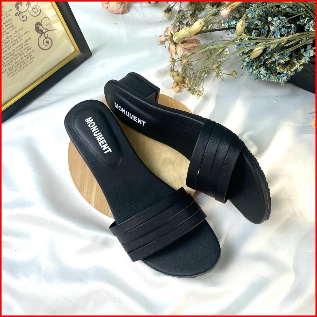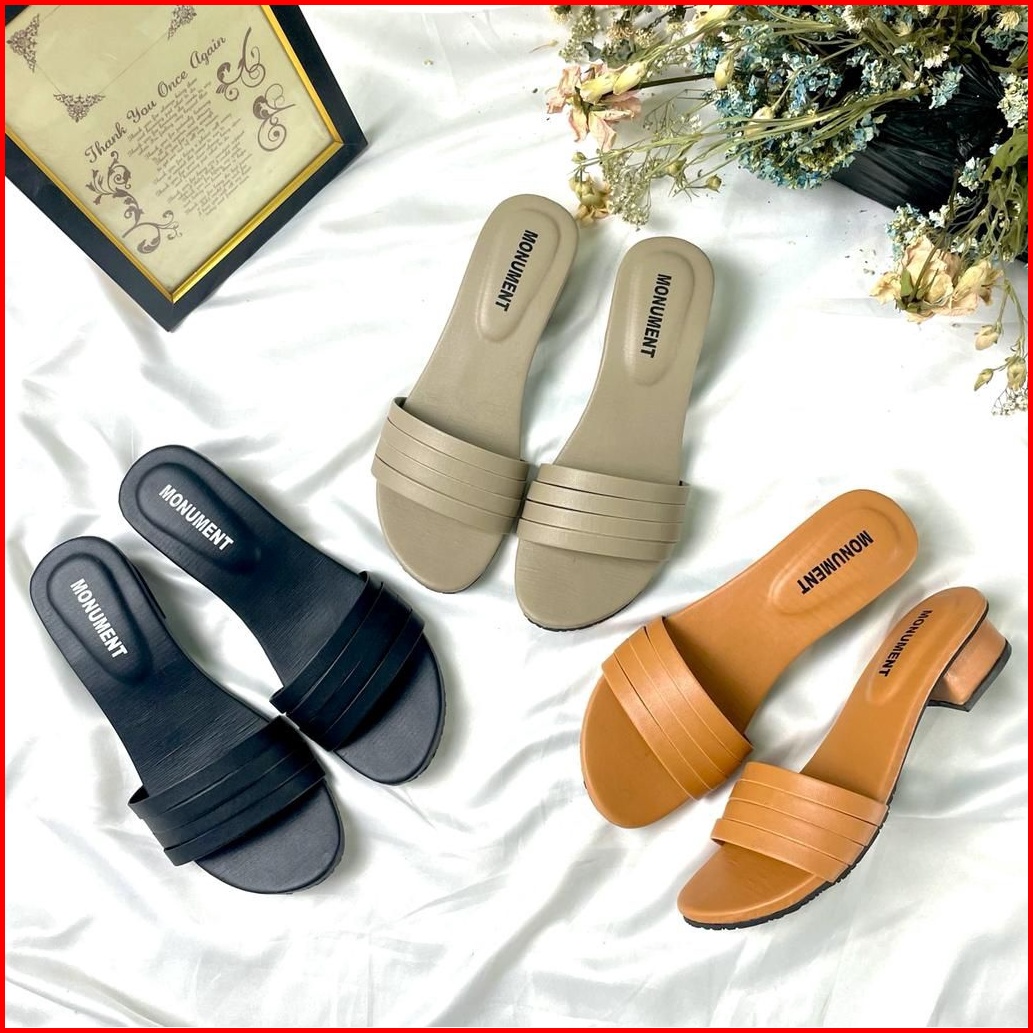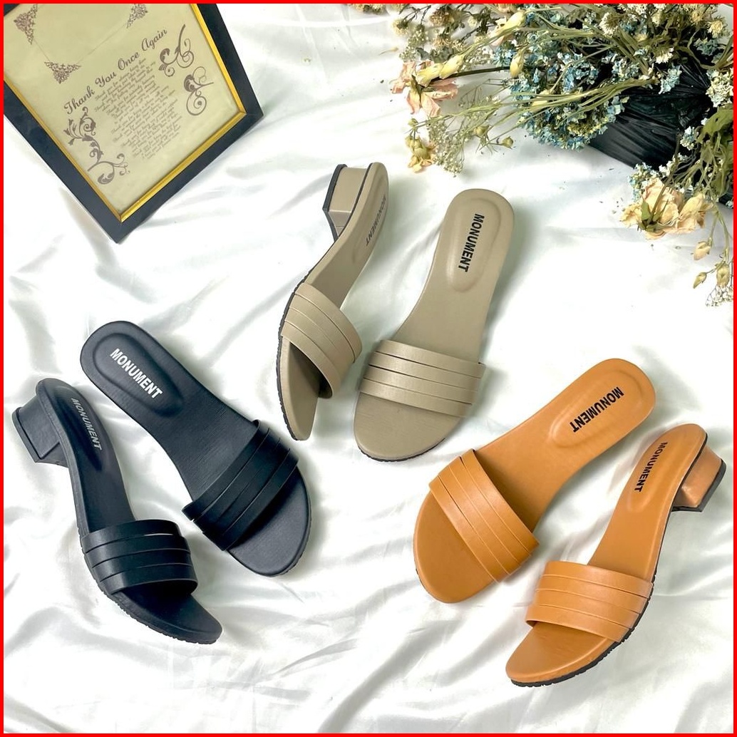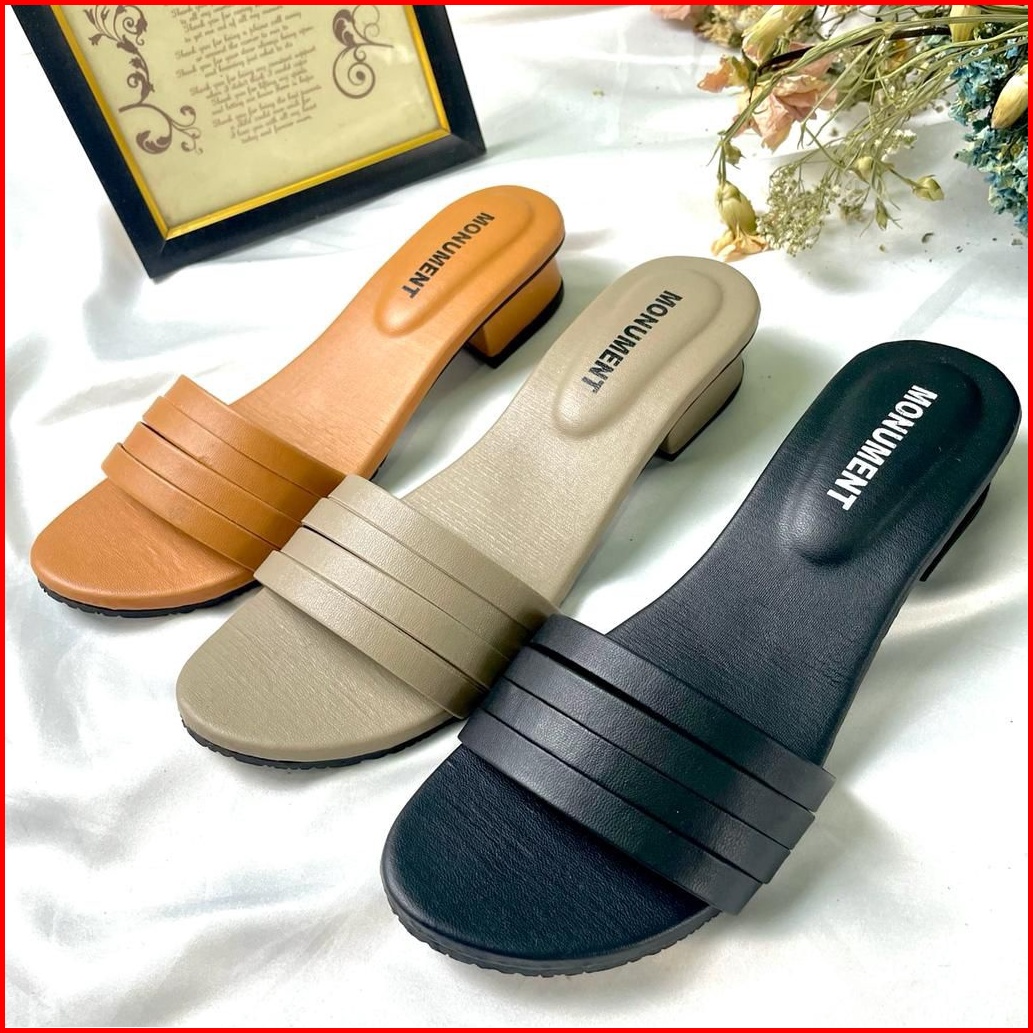 Sandal Wanita Hak Tahu 3cm Sendal Heels Selop Tali Polos Kasual Terbaru Alena H-5