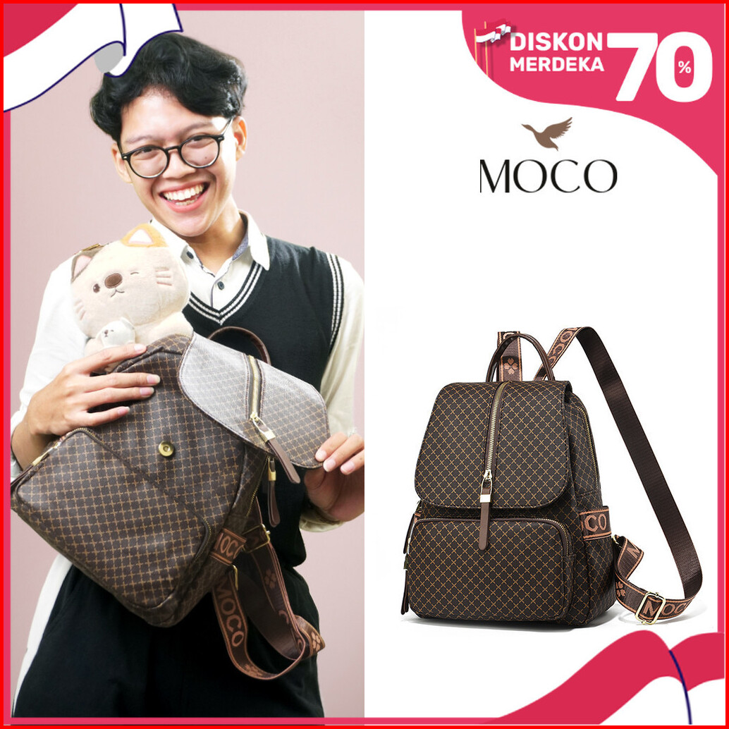 Moco Fashion Tas Ransel Wanita Anti Maling Backpack Kulit Terbaru 8801-1