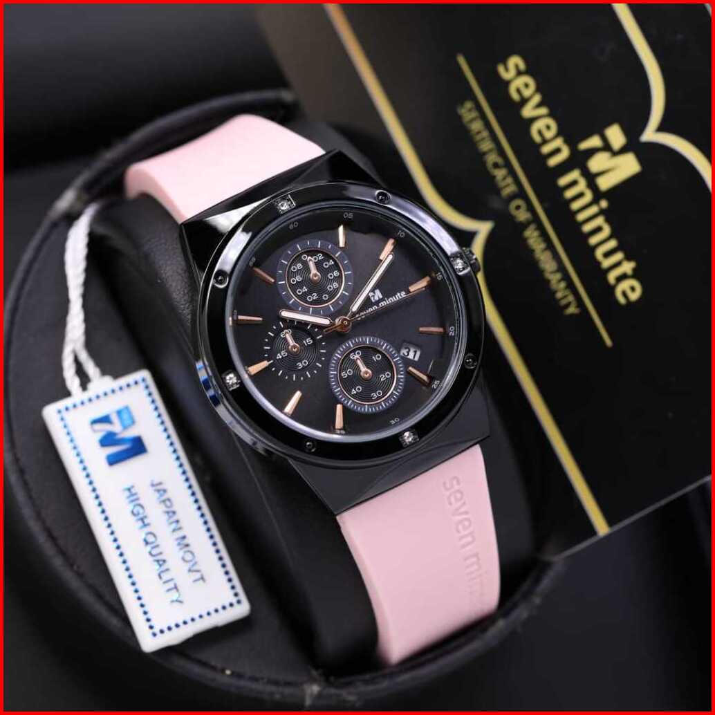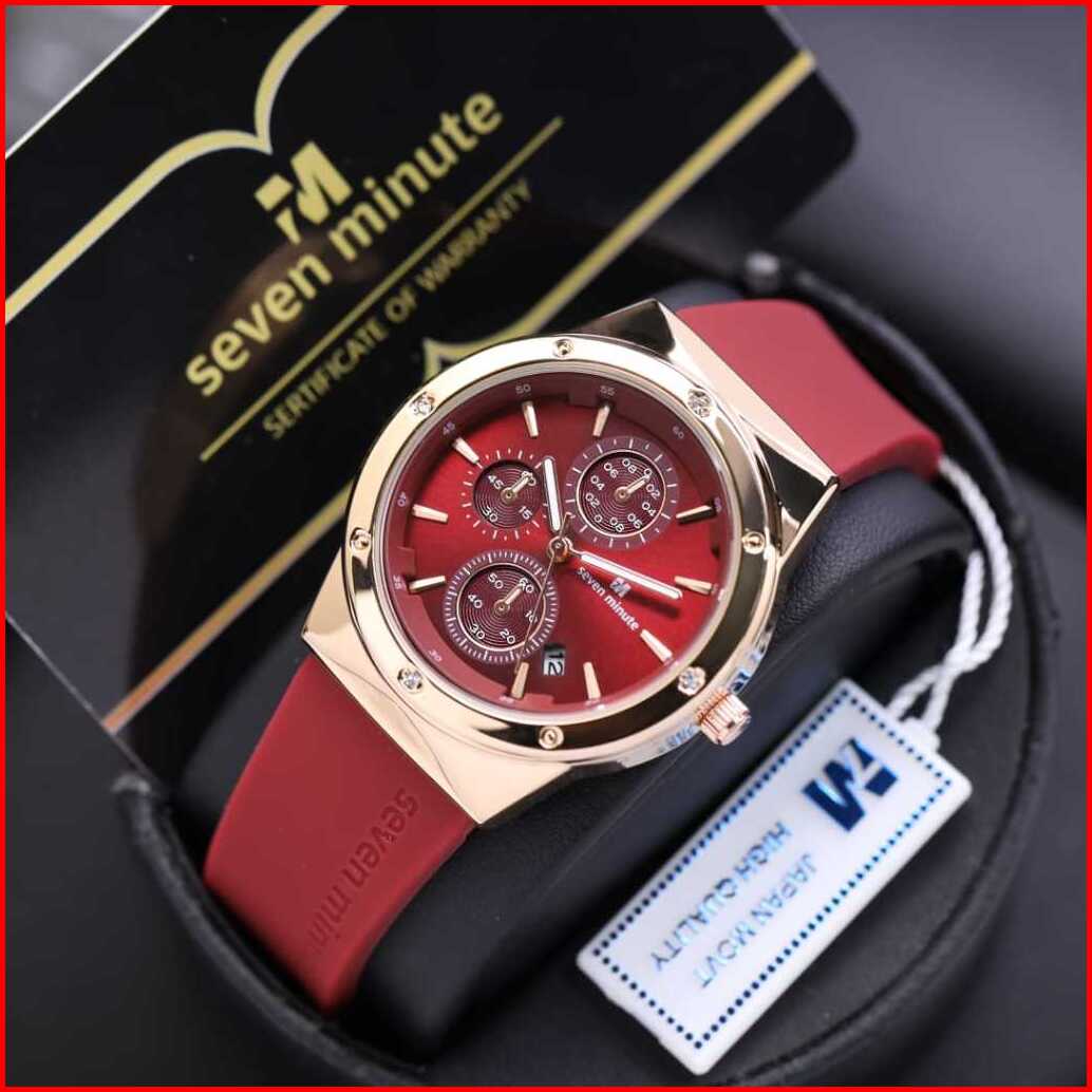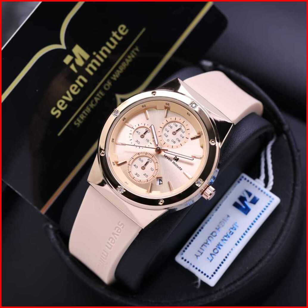 Jam Tangan Wanita Seven Minute-m757 Original Tali Rubber Chrono Variasi Tanggal Aktif Box Exclusive