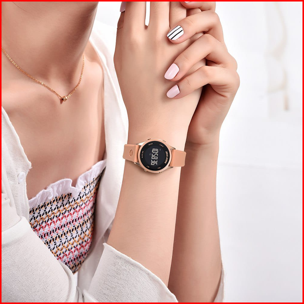 Jam Tangan Wanita Jonas Jasmin-2247 Digital Original Tali Rubber Body Bulat Tanggal Hari Aktif