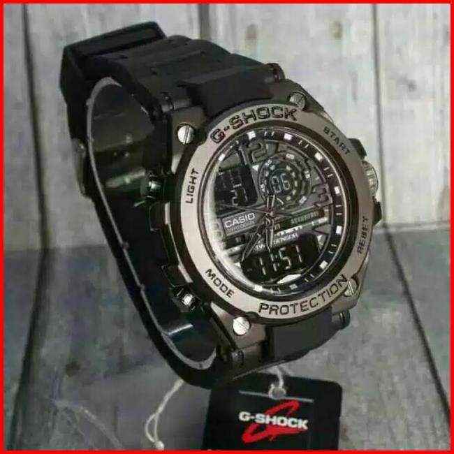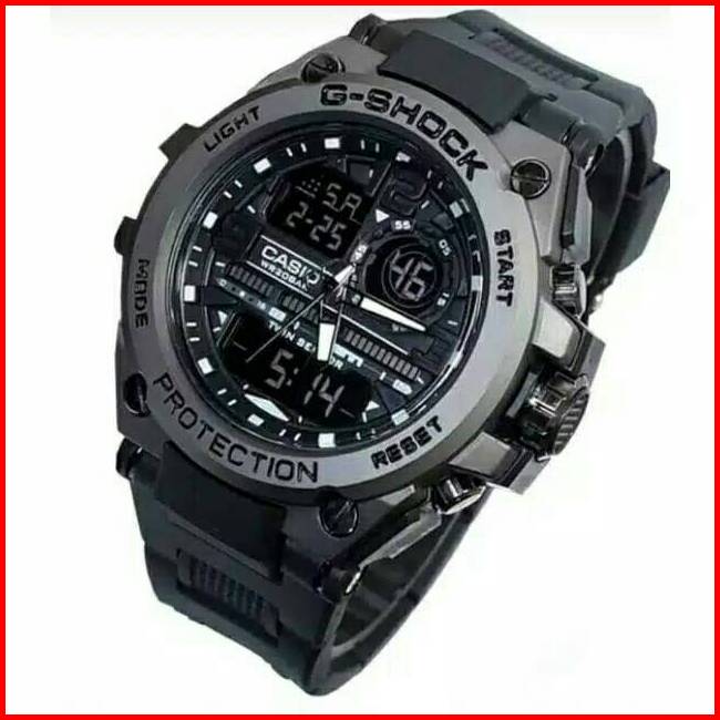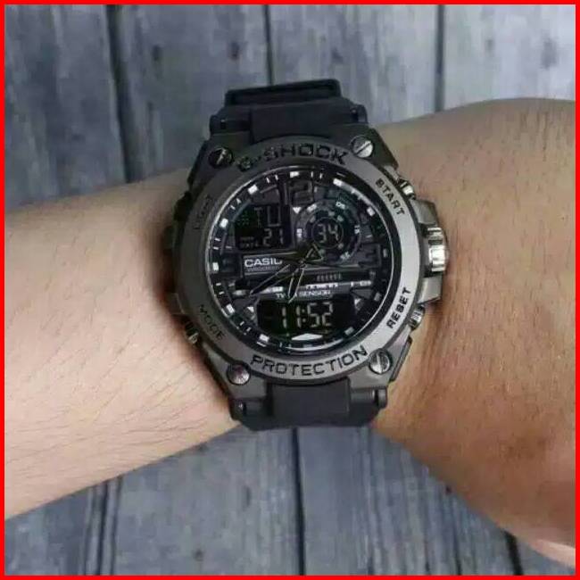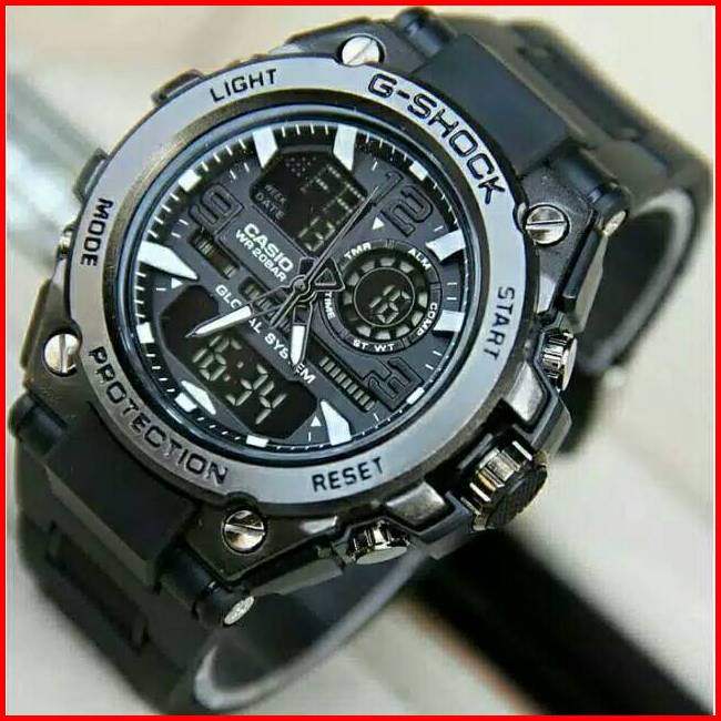Jam Tangan Pria Kepala Besi Gst-8600 Double Time Strap Rubber Dikirim Jakarta