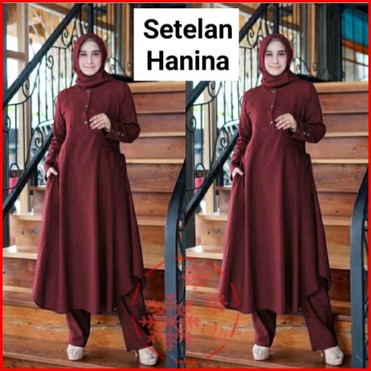 Setelan Pakaian Wanita Hanina One Set Dialy Busui Rayon Twill Premium Adem Lembut Dapat Menyerap Keringat Size S M L Xl