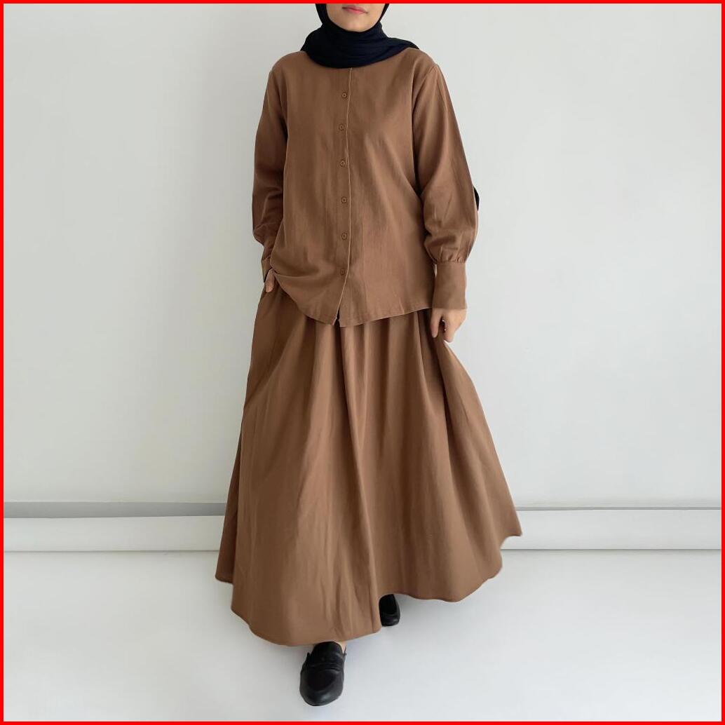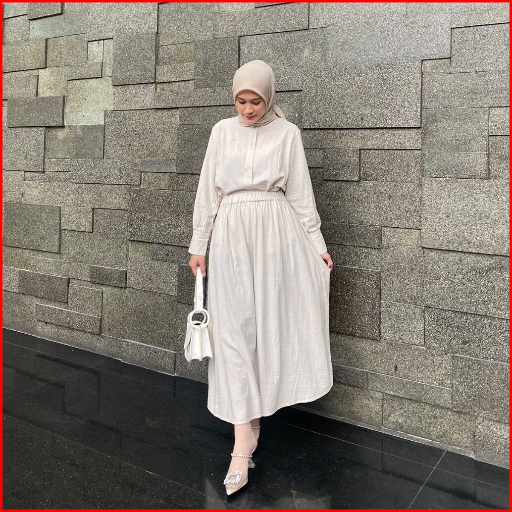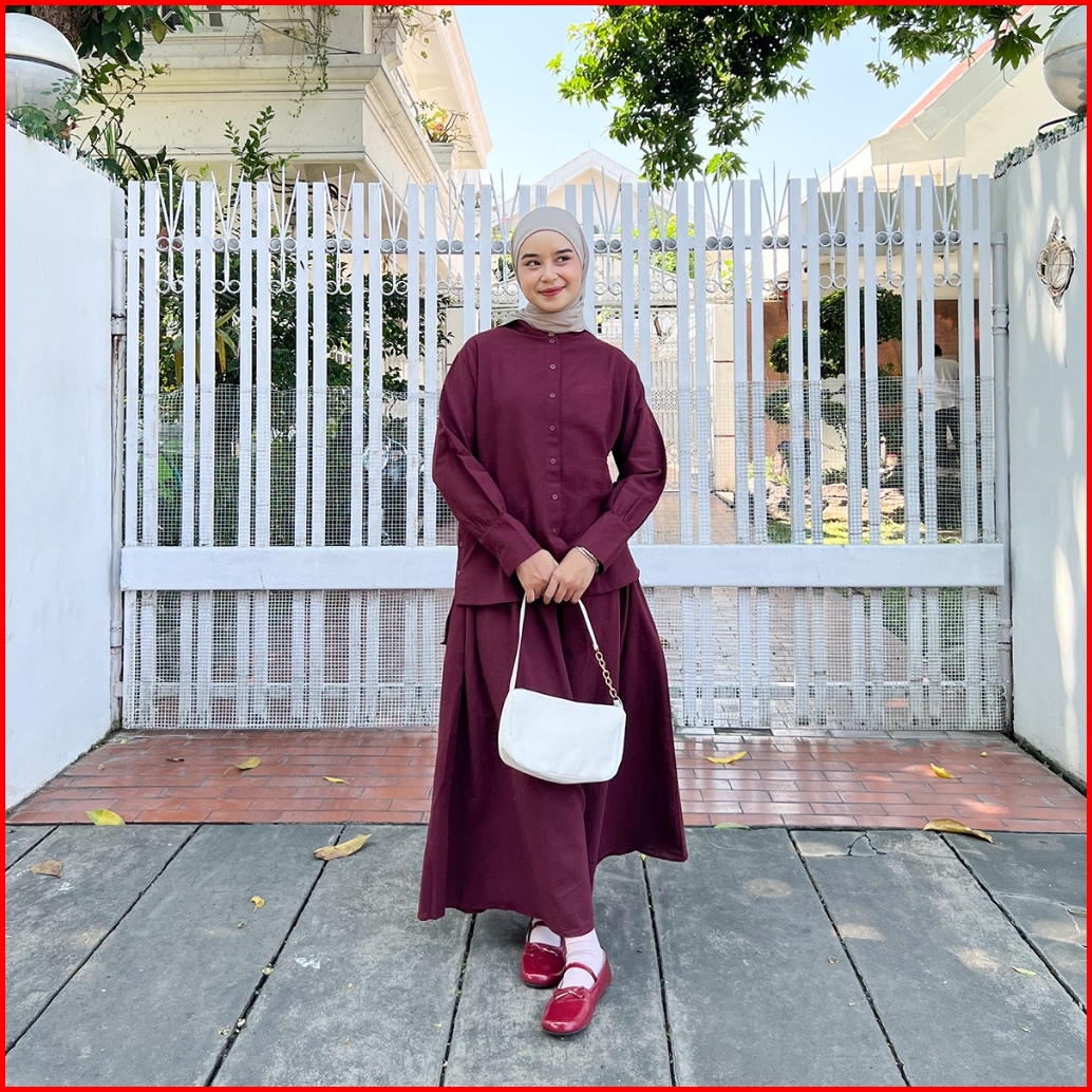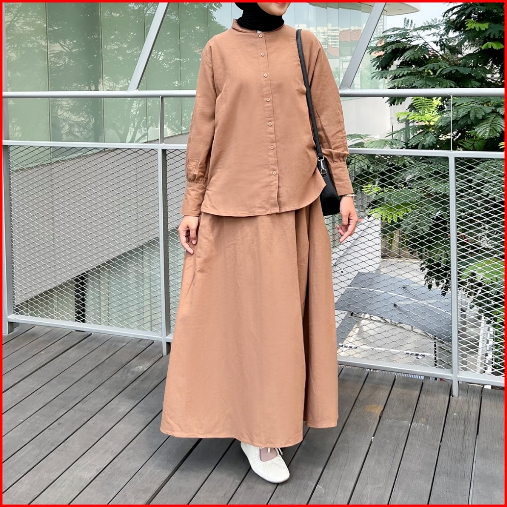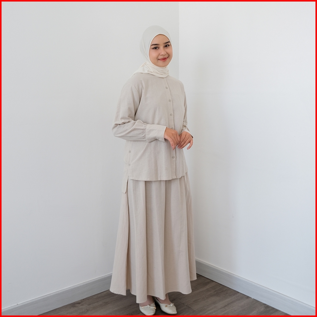 Yeppuoutfit - Eunbi Linen One Set I Setelan Kemeja Blouse Linen Dan Skirt Linen A Line Casual Formal