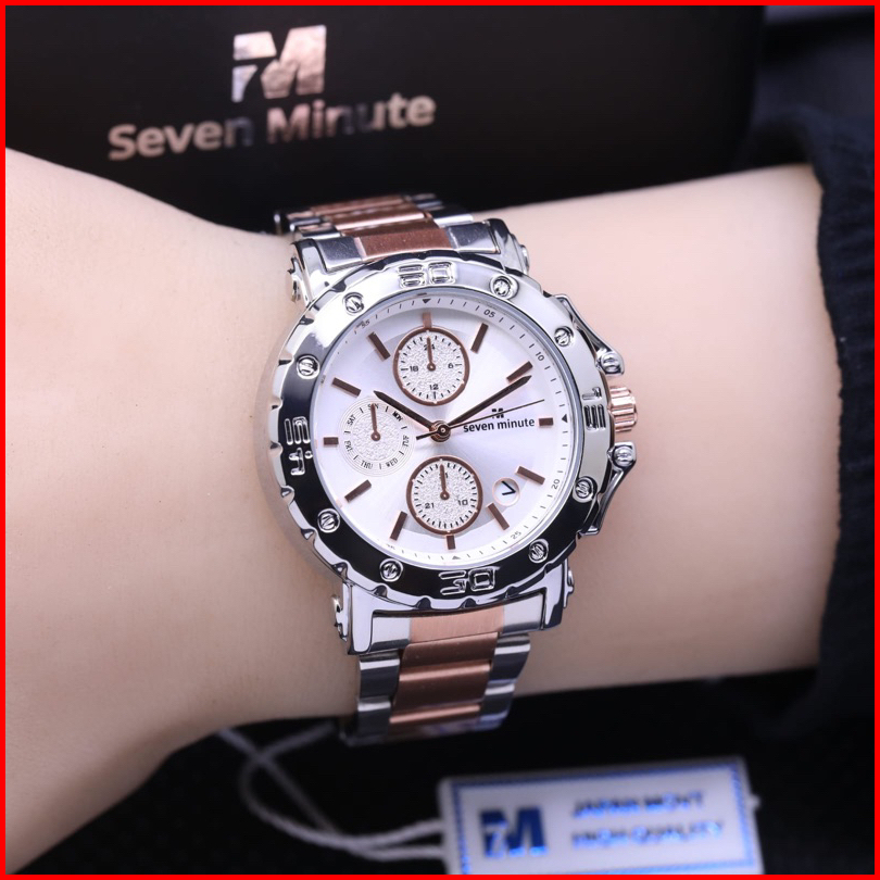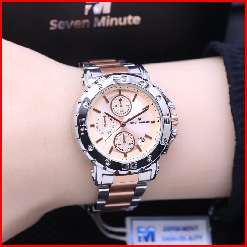 Jam Tangan Wanita Seven Minute M701 Original Rantai Stainless Steel Chrono Off Tanggal Aktif Jam Tangan Fashion Cewek