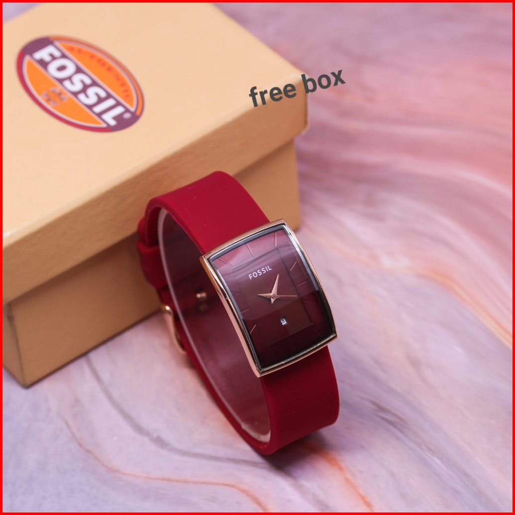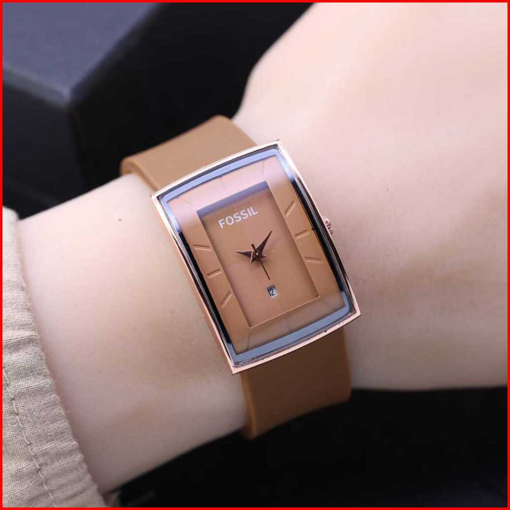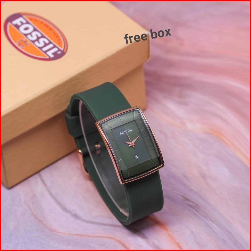 Jam Tangan Wanita Fosol Tali Rubber Body Oval Rose Tanggal Aktif Box Exclusive