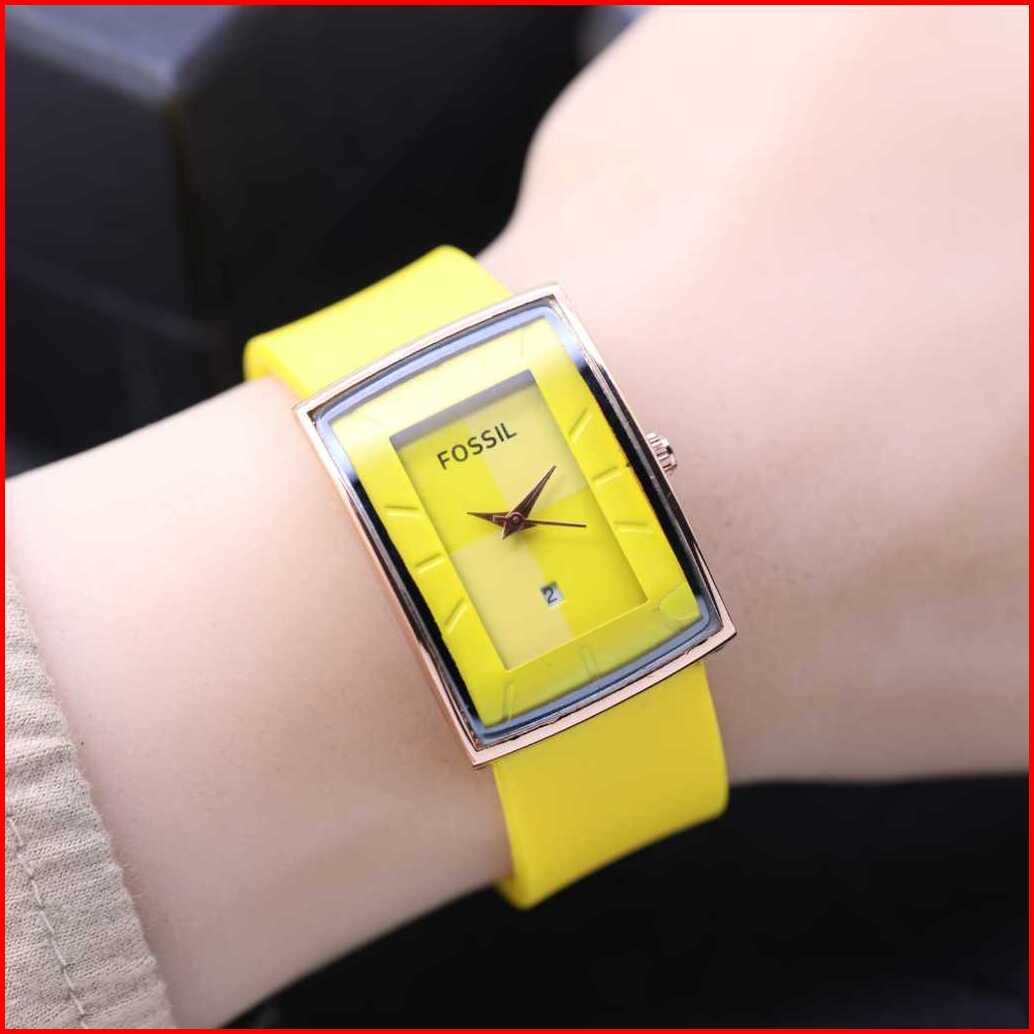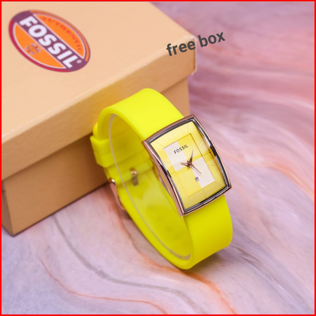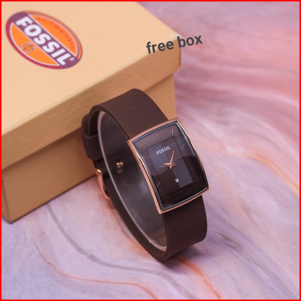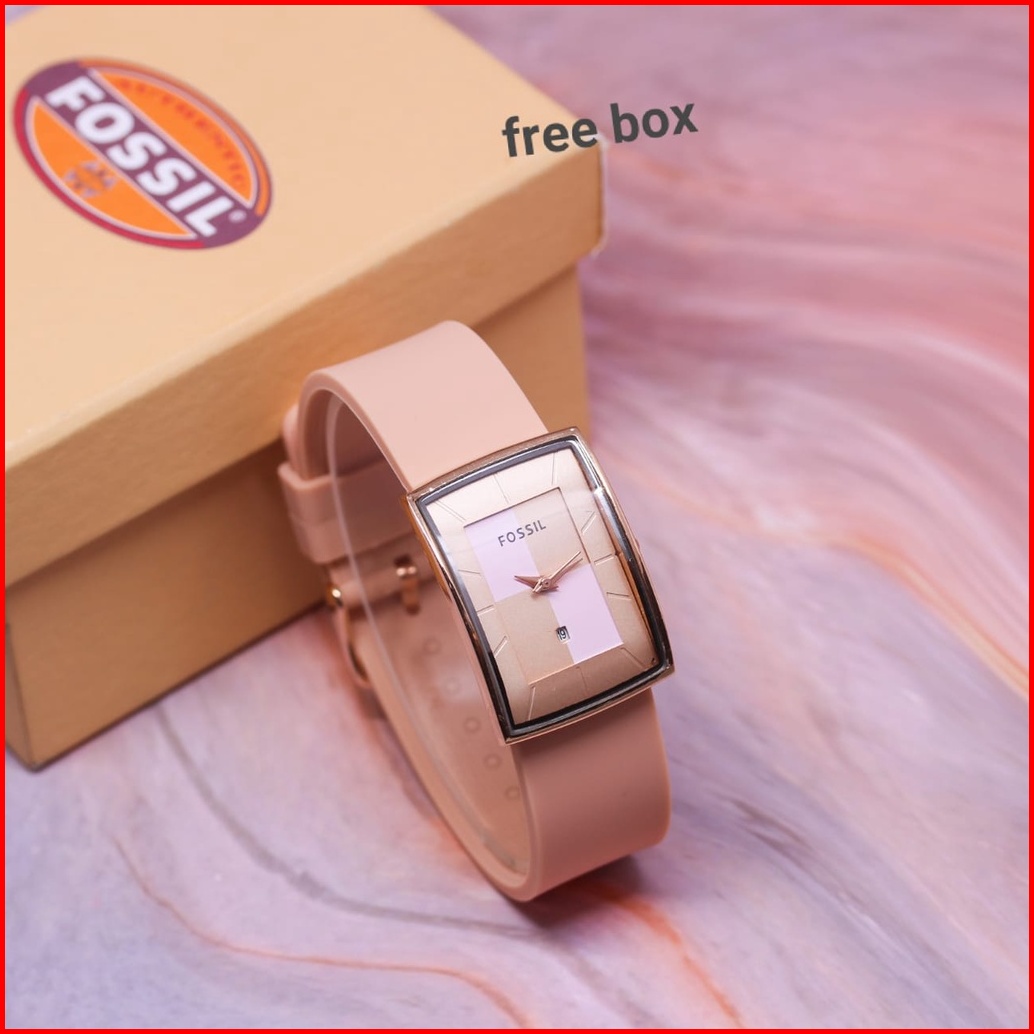 Jam Tangan Wanita Fosol Tali Rubber Body Oval Rose Tanggal Aktif Box Exclusive