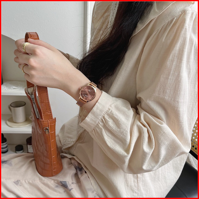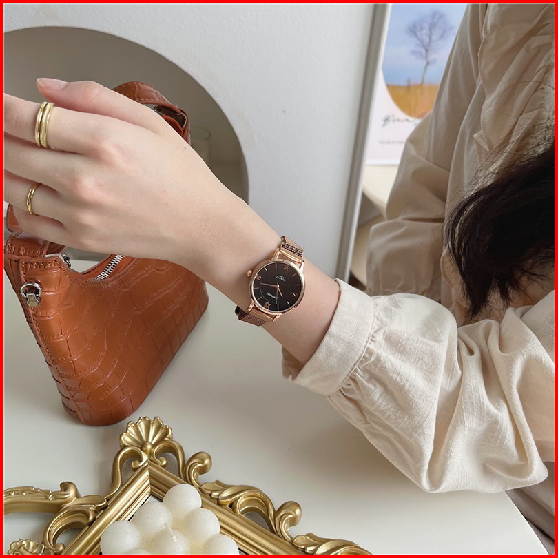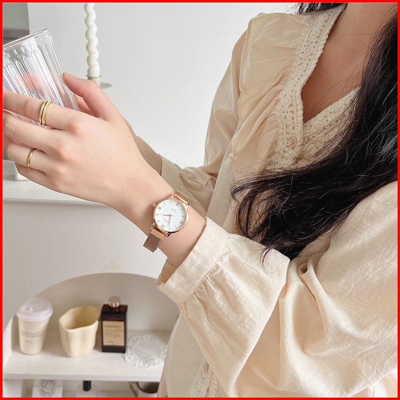 Jam Tangan Wanita Tali Magnet Romawi Garis Bulat Jam Analog Simple Elegant Ca145