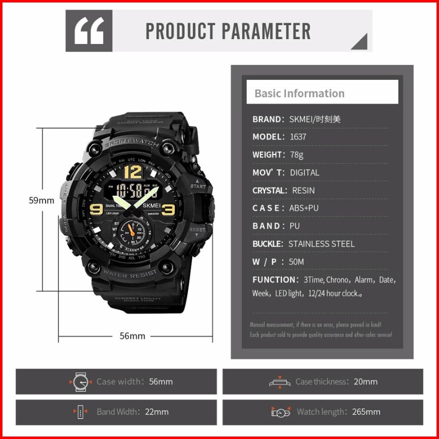 Jam Tangan Pria Skmei 1637 Analog Digital Jam Tangan Analog Digital Led Original