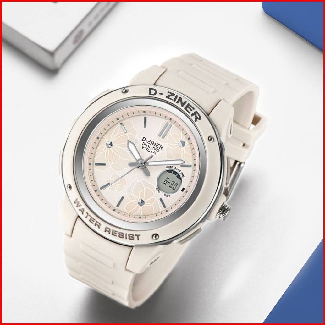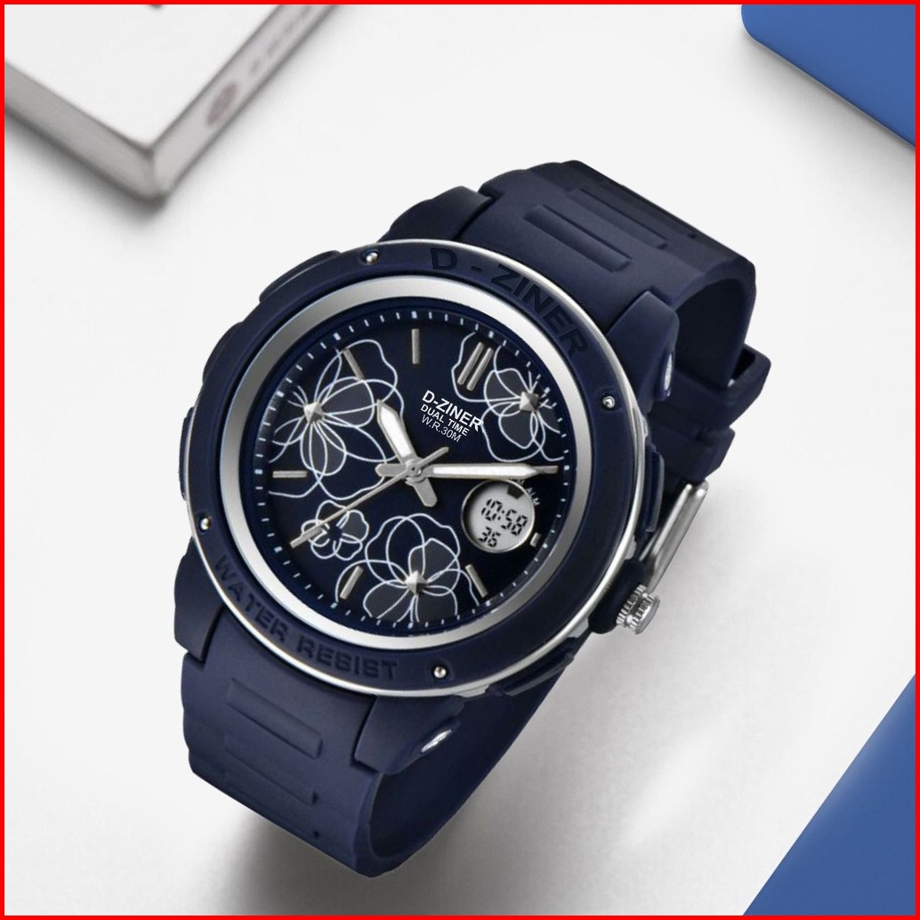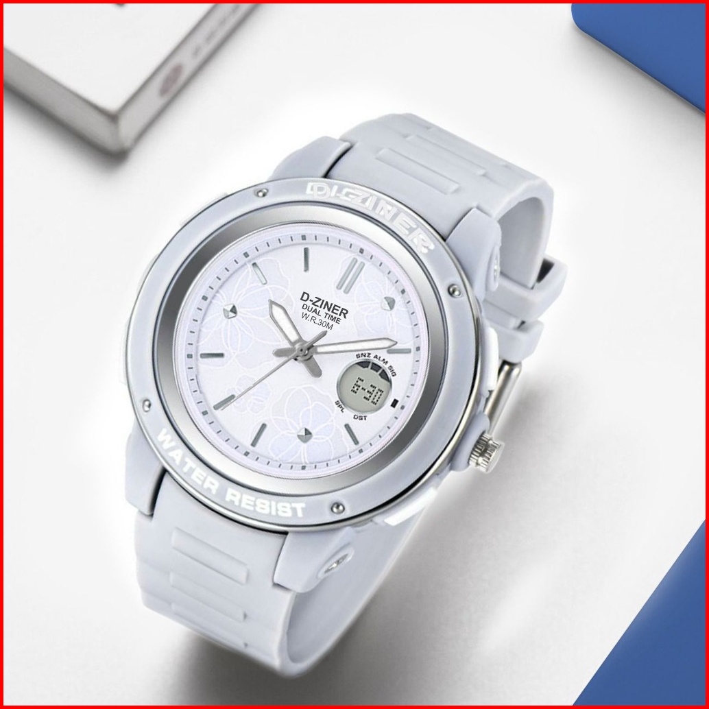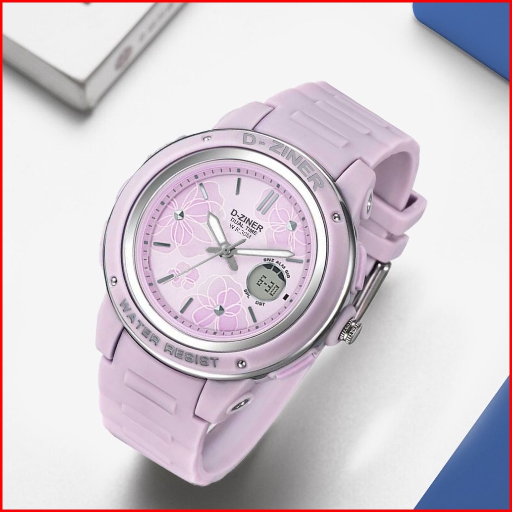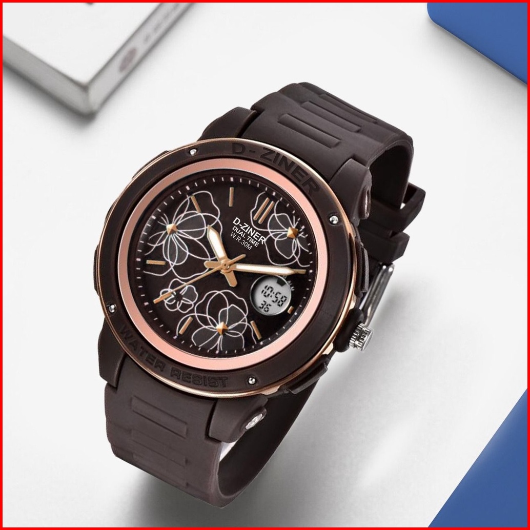 Jam Tangan D-ziner 3311 Dual Time Anti Air Strap Rubber Include Box Bga-150fl-4a Bga Series Jam Tangan Wanita Original G