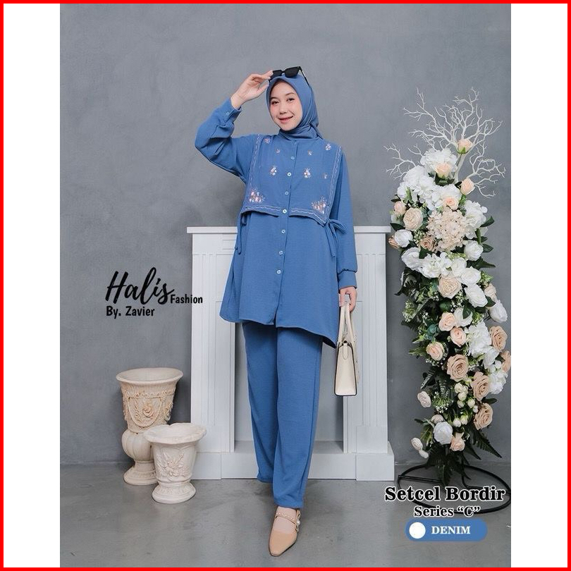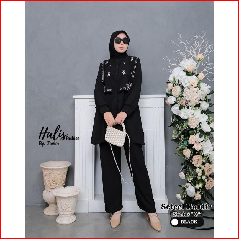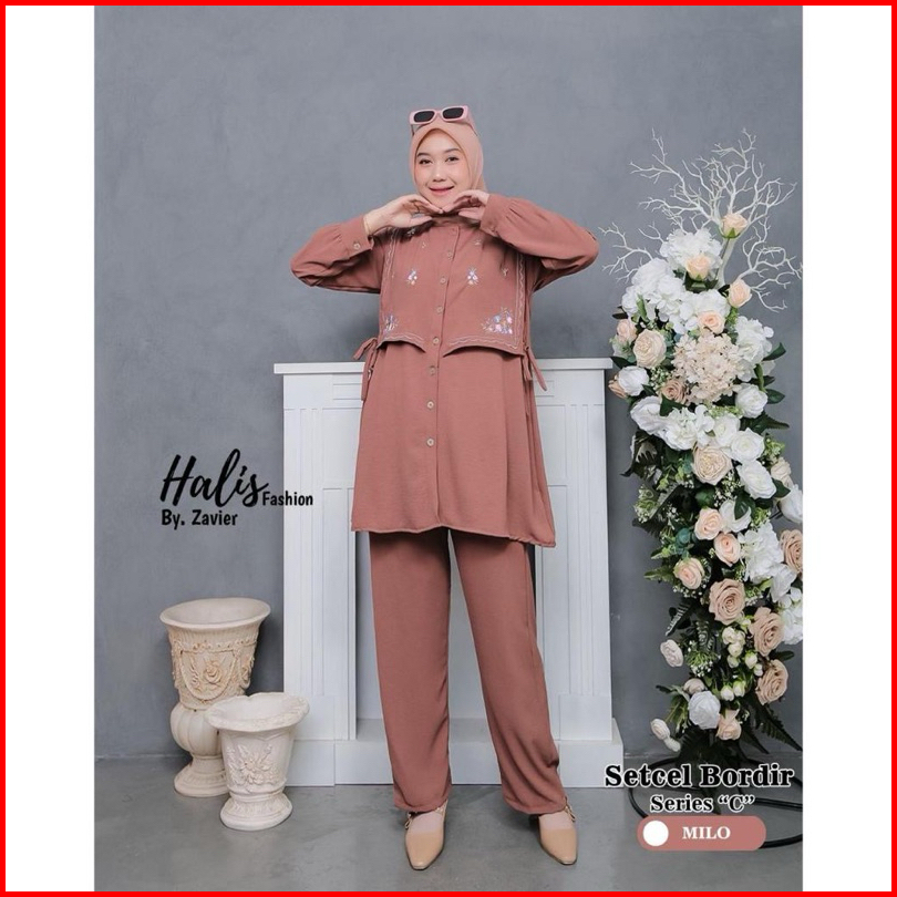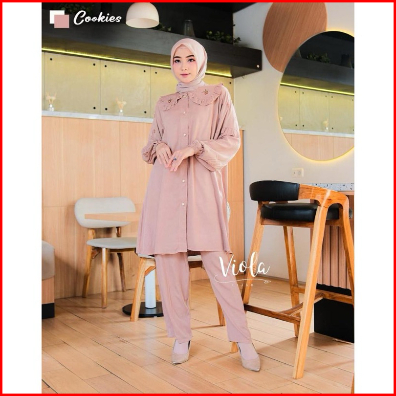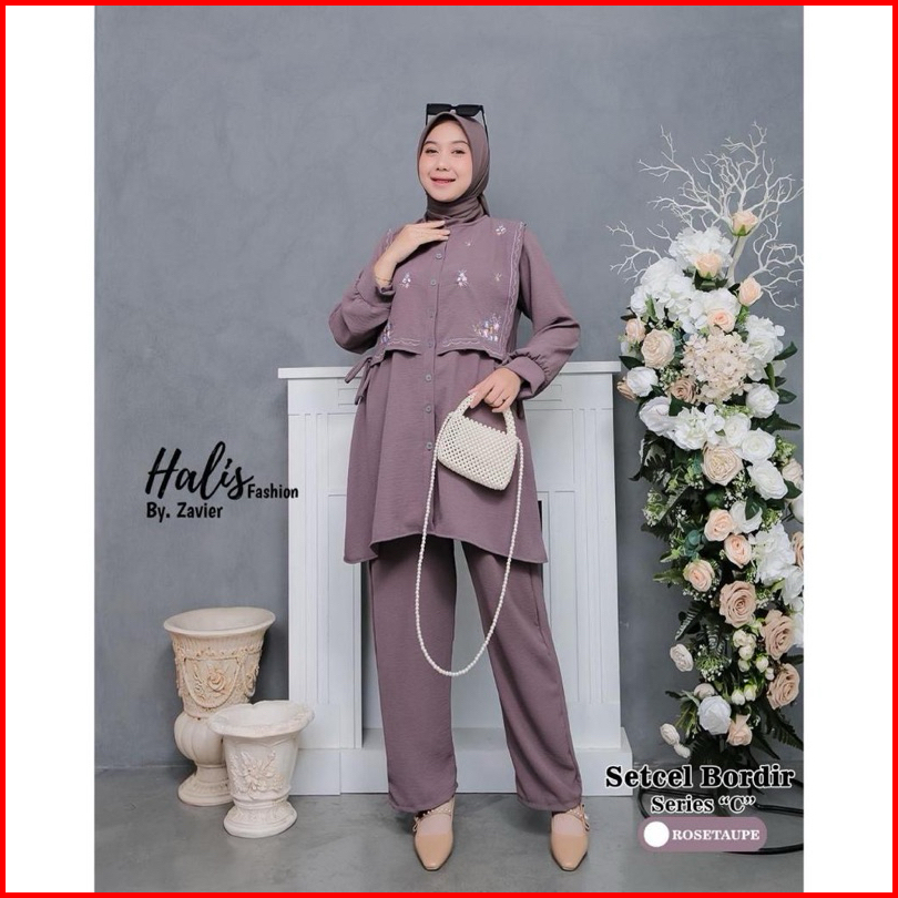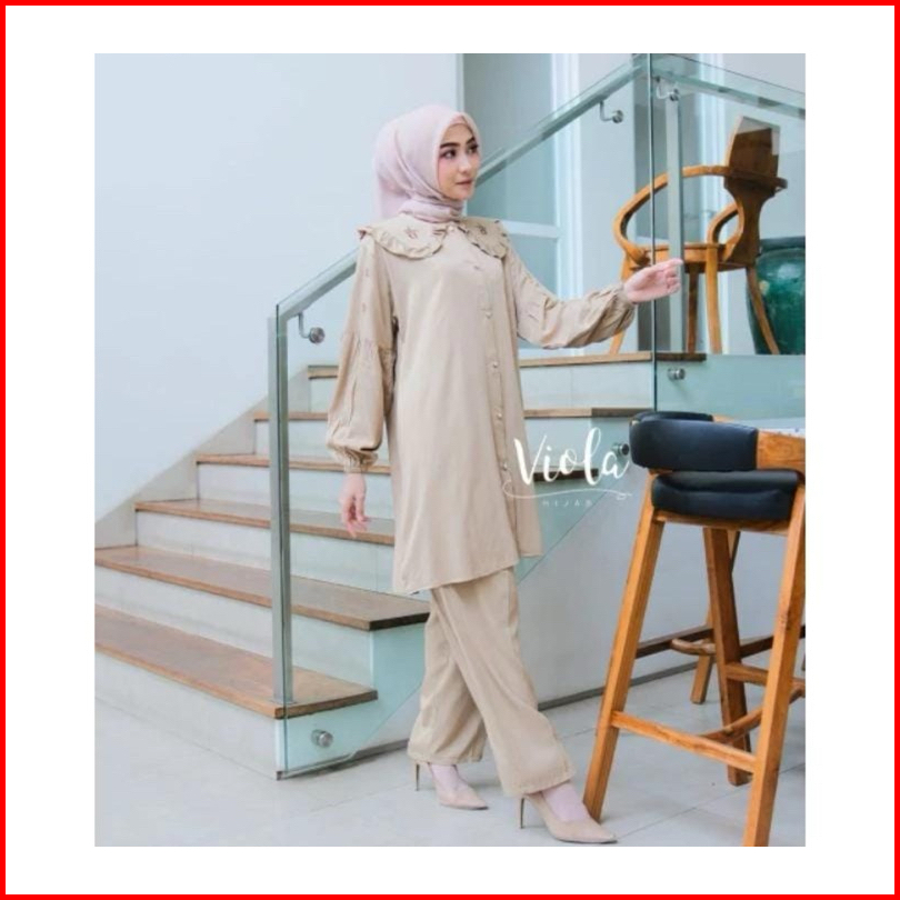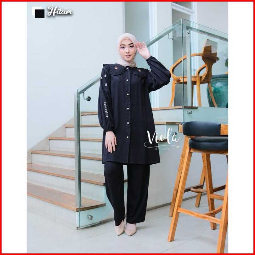 Kirana Zavira Viola One Set Bordir Cringkel Panjang Atasan Biasa Bukan Set Tunik