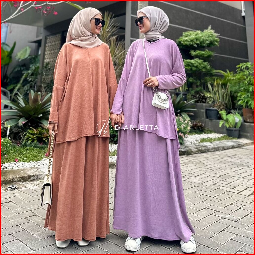 New Motif Lea Set Rok Knit Caramel Busui Friendly Daily Set Batwing By Diarletta