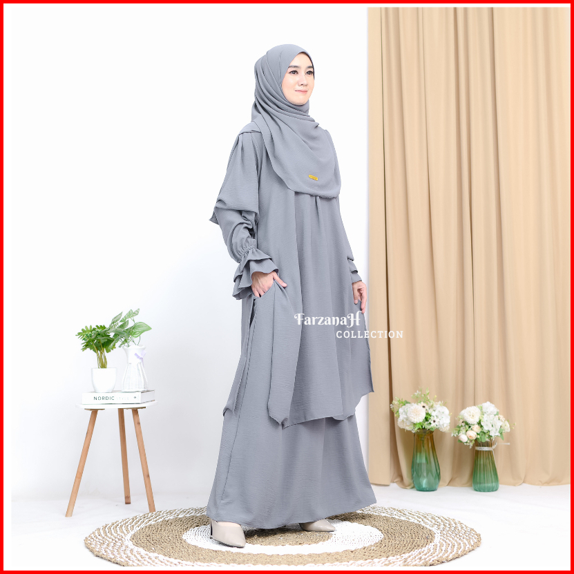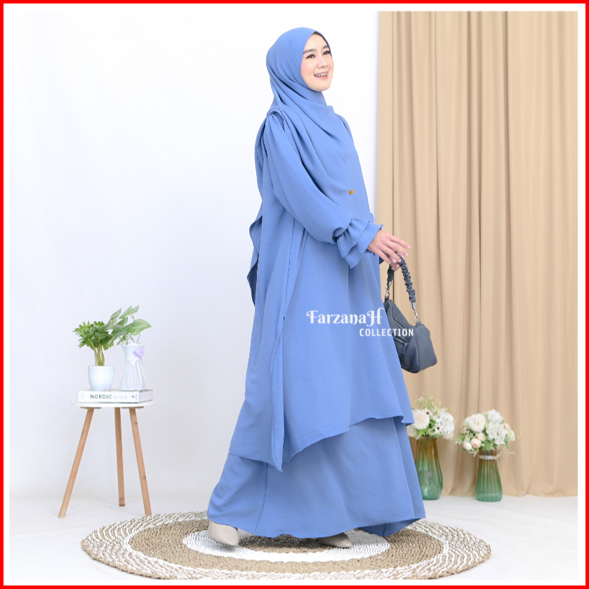One Set Abaya Khadijah Rok Long Tunik Pasmina Crinkle Airflow Setelan Abaya Umroh Hajian Terbaru L Xl 2xl