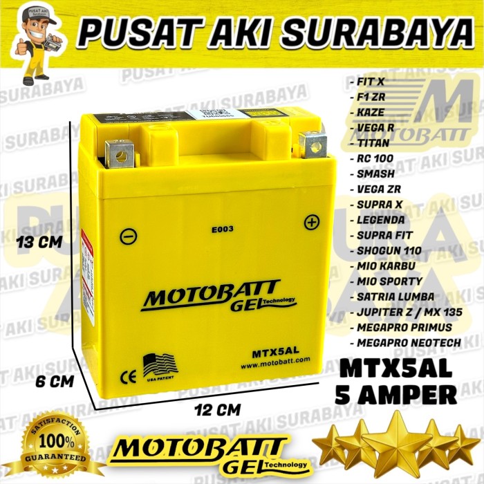 MOTOBATT GEL ACCU KERING MTX5AL GM5Z MIO SPORTY VEGA JUPITER SMASH MP