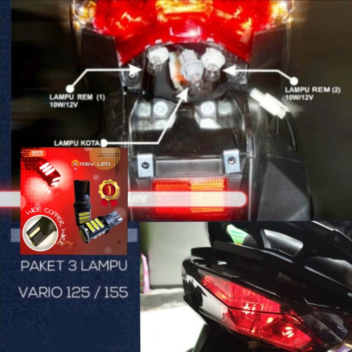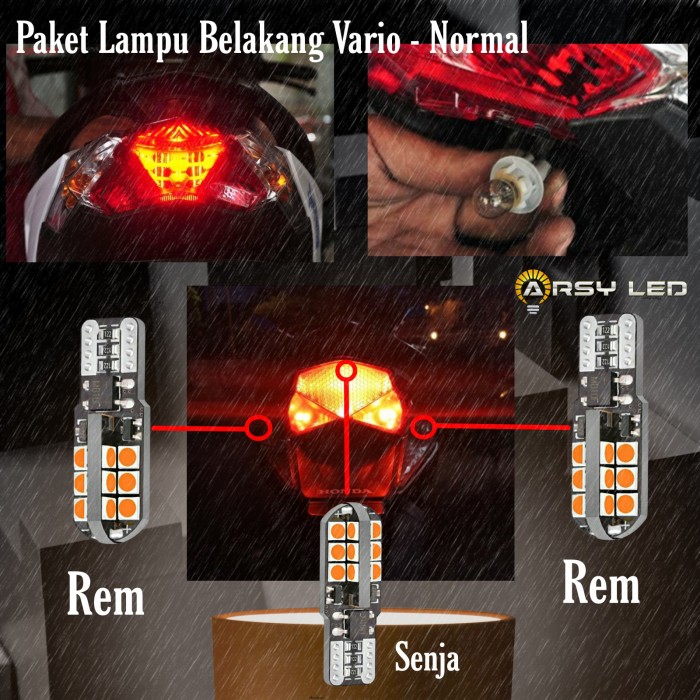 PAKET LAMPU LED MOTOR REM NORMAL HONDA VARIO 125 150 SUPER TERANG - MERAH