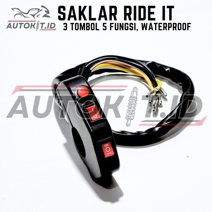 SAKLAR MOTOR 3 TOMBOL 5 FUNGSI WATERPROOF MERK RIDE IT ORIGINAL