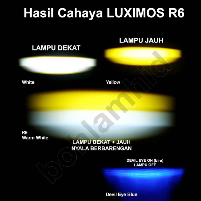 LAMPU LED TEMBAK R6 LUXIMOS MOTOR MOBIL LUMINOS PROJEKTOR 4 WARNA 45W - BIRU