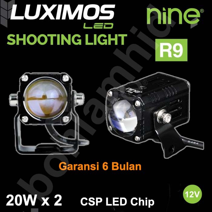 LAMPU TEMBAK LED LUXIMOS R9 PROJEKTOR LASER 2 WARNA PUTIH KUNING MOTOR MOBIL 2X20W LUMINOS CSP CHIP - 1PCS R9