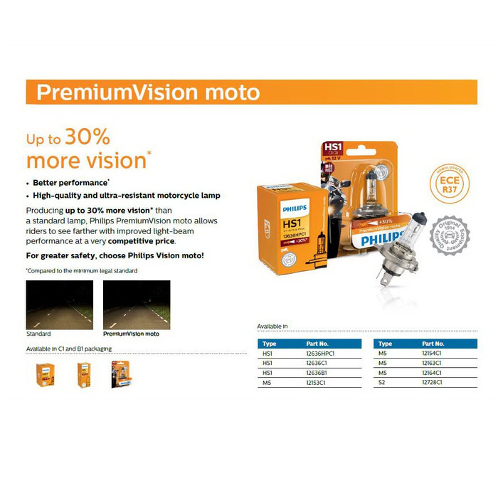 PREMIUMVISION 35/35W HS1 12636C1 BOLA LAMPU MOTOR PHILIPS