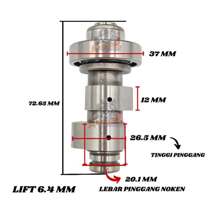 PAKET NOKEN AS CAM RACING RRA MIO SPORTY MIO SOUL MIO SMILE FINO KARBU VEGA ZR PLUS RRA PELATUK ROLLER DAN PER KLEP - CAMSHAFT RACING MIO 6.4 MM - NOKEN AS ONLY, AH1 RACING