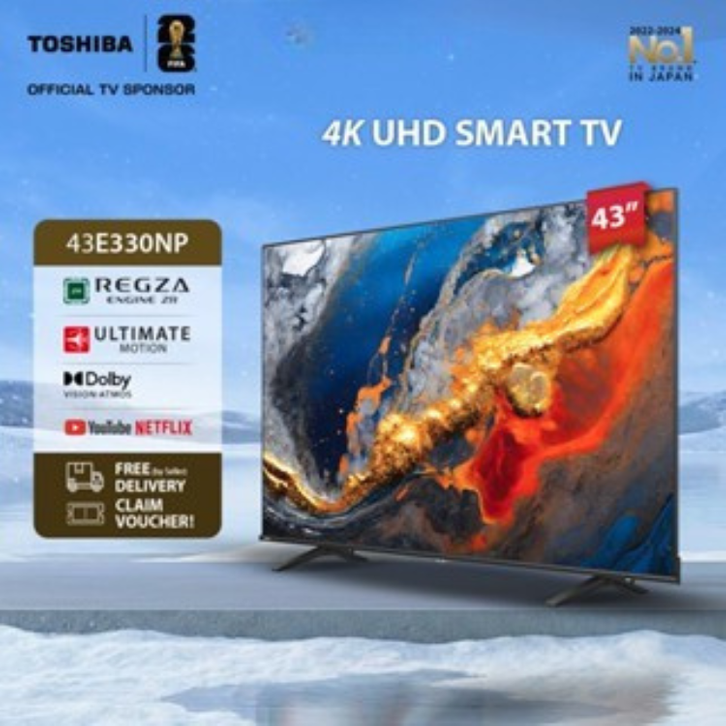 TV SMART TOSHIBA 43 INCH TELEVISI E330NP 4K UHD DOLBY AUDIO JERNIH BERKUALITAS GARANSI RESMI
