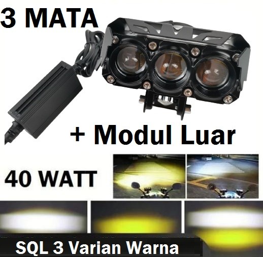 MINI PROJIE 3 MATA LAMPU TEMBAK LASER SQL 3 TITIK FOGLAMP MOBIL 40W - LOW P HIGH K