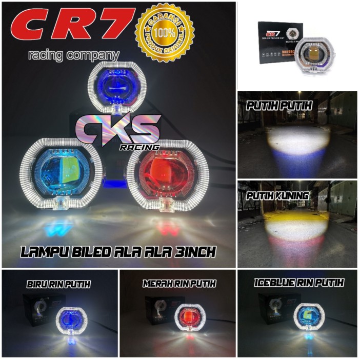 BILED ALA ALA LAMPU PROJIE BILED CUT OFF 3 INCH CR7 PREMIUM PLUS RING SHROUD DEVIL CAHAYA HIGH LOW - BIRU RIN PUTIH, PUTIH PUTIH