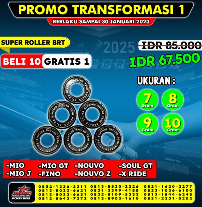 SUPER ROLLER BLACK DIAM0ND BRT YAMAHA MIO (7,8,9,10 GRAM) - 9 GRAM