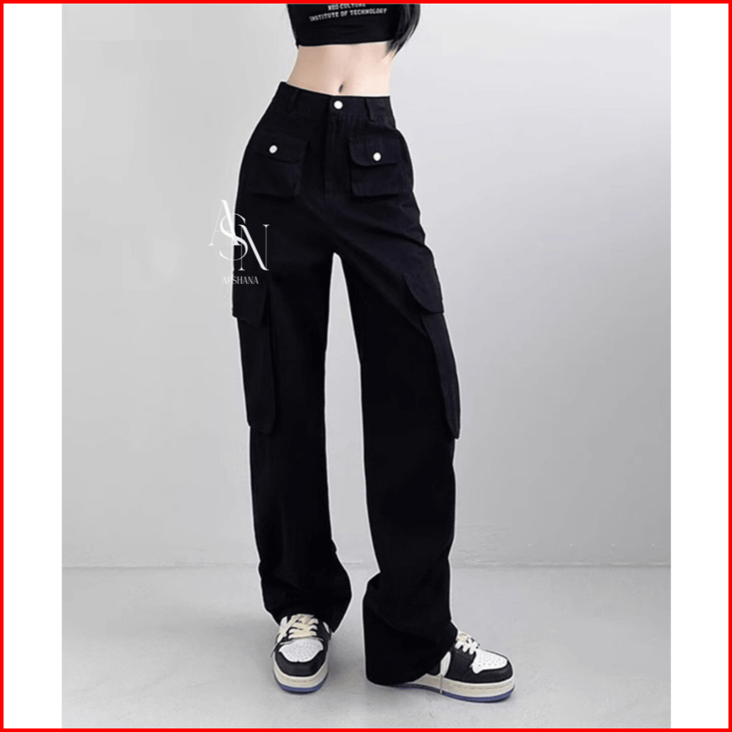 Celana Panjang Hw Cargo Wanita Jeans Korean Style - Celana Jeans Cargo Wanita Premium Original Real